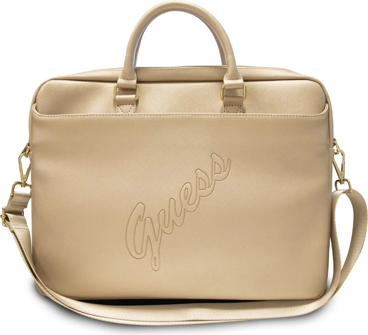 Guess PU Saffiano Script Computer Bag 15 - Gold : Luxus und Funktion in einem