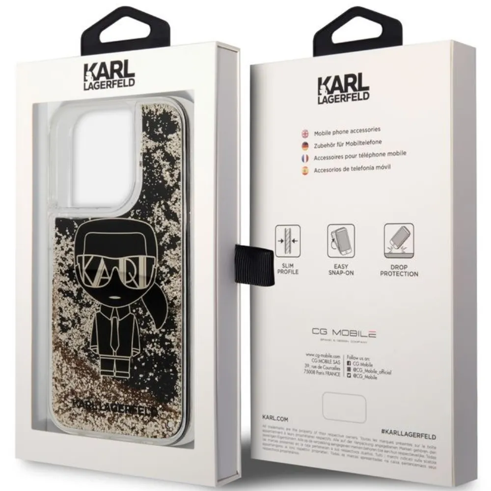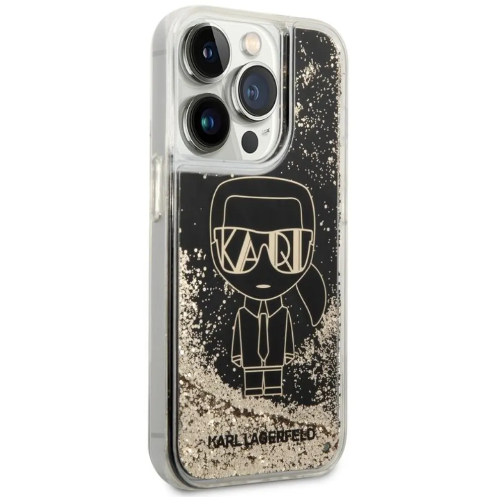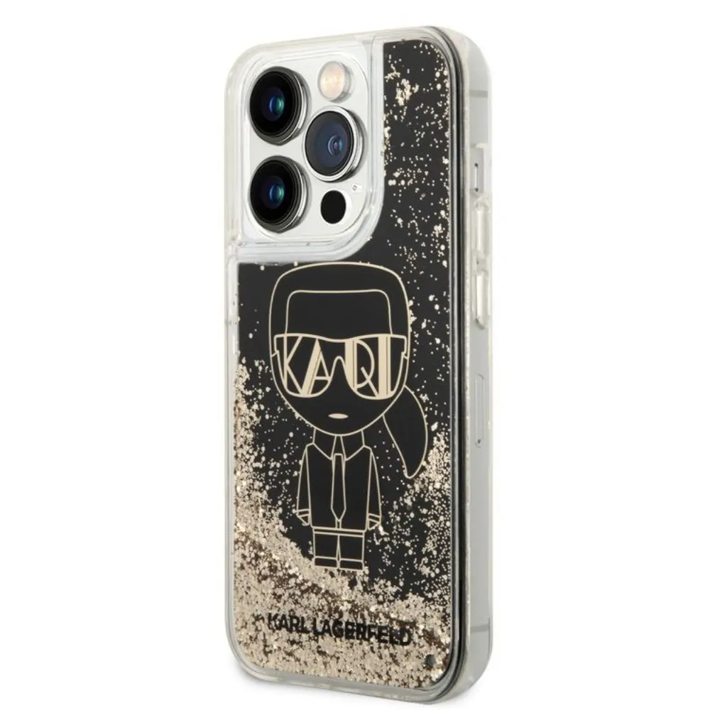 Karl Lagerfeld Liquid Glitter Case Gatsby Ikonik For iPhone 14 Pro – Black/Gold