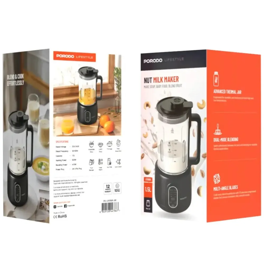 Mit seiner modernen Technologie, 600-Watt-Leistung und automatischen Heiz- und Mixfunktionen vereint der Porodo Automatischer Heiss- und Kaltgetränkezubereiter – Schwarz Komfort, Effizienz und Vielseitigkeit in einem kompakten Gerät. Ideal für alle, die frische, gesunde und natürliche Getränke ohne Zusatzstoffe geniessen möchten.