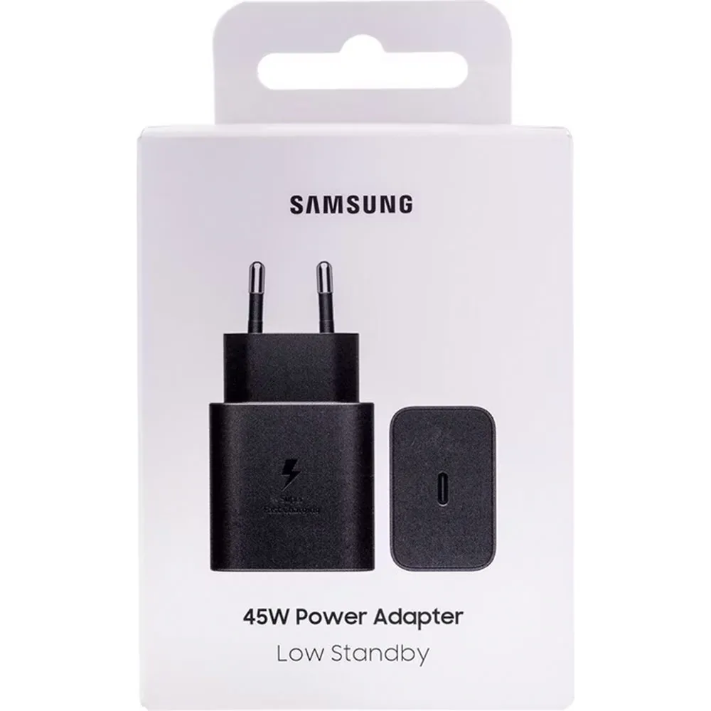 Samsung Reiseadapter 45W Schwarz ist ein leistungsstarkes und kompaktes Ladegerät das für schnelles sowie effizientes Aufladen deiner Galaxy Geräte entwickelt wurde. Mit einer maximalen Ausgangsleistung von 45 Watt und der Unterstützung für Super Schnellladen 2.0 bietet er dir die nötige Power um dein Smartphone oder Tablet in kürzester Zeit wieder einsatzbereit zu machen. Der Samsung Reiseadapter 45W Schwarz überzeugt durch sein schlankes Design und ist dank des mitgelieferten 1,8 Meter langen USB C Kabels der ideale Begleiter für zu Hause oder unterwegs.