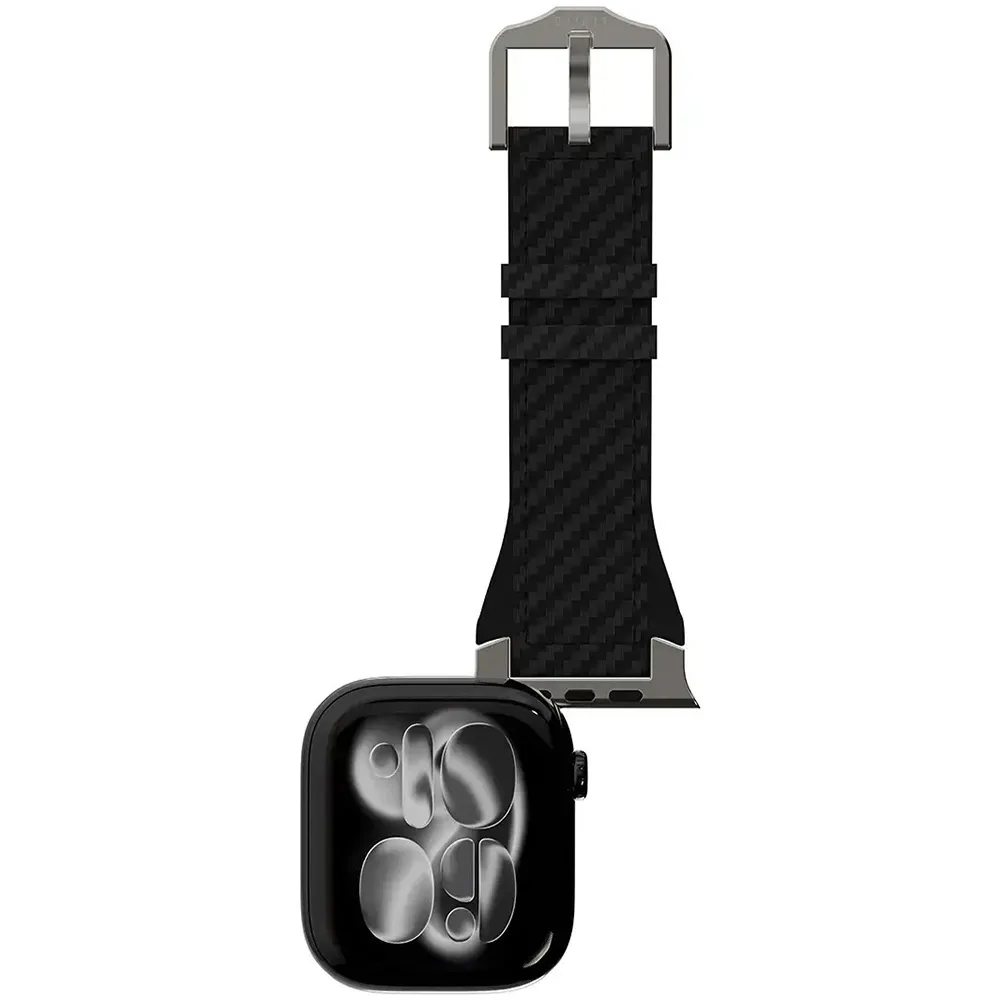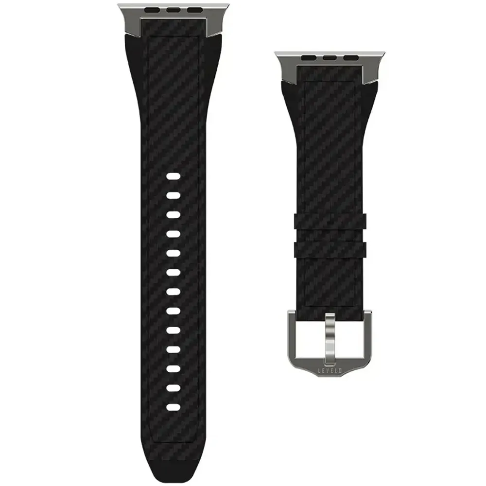 Levelo Toray Silikon & Kunstleder Carbon Optik Apple Watch 49mm – Schwarz