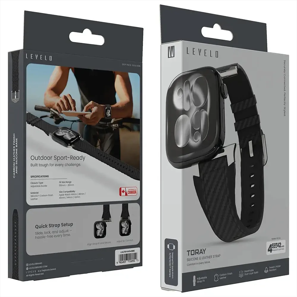 Levelo ist bekannt für hochwertiges Zubehör im Bereich moderner Geräte und überzeugt durch langlebige Materialien und präzise Verarbeitung. Auch das Levelo Toray Silikon & Kunstleder Carbon Optik Apple Watch 49mm - Schwarz erfüllt diese hohen Qualitätsstandards.