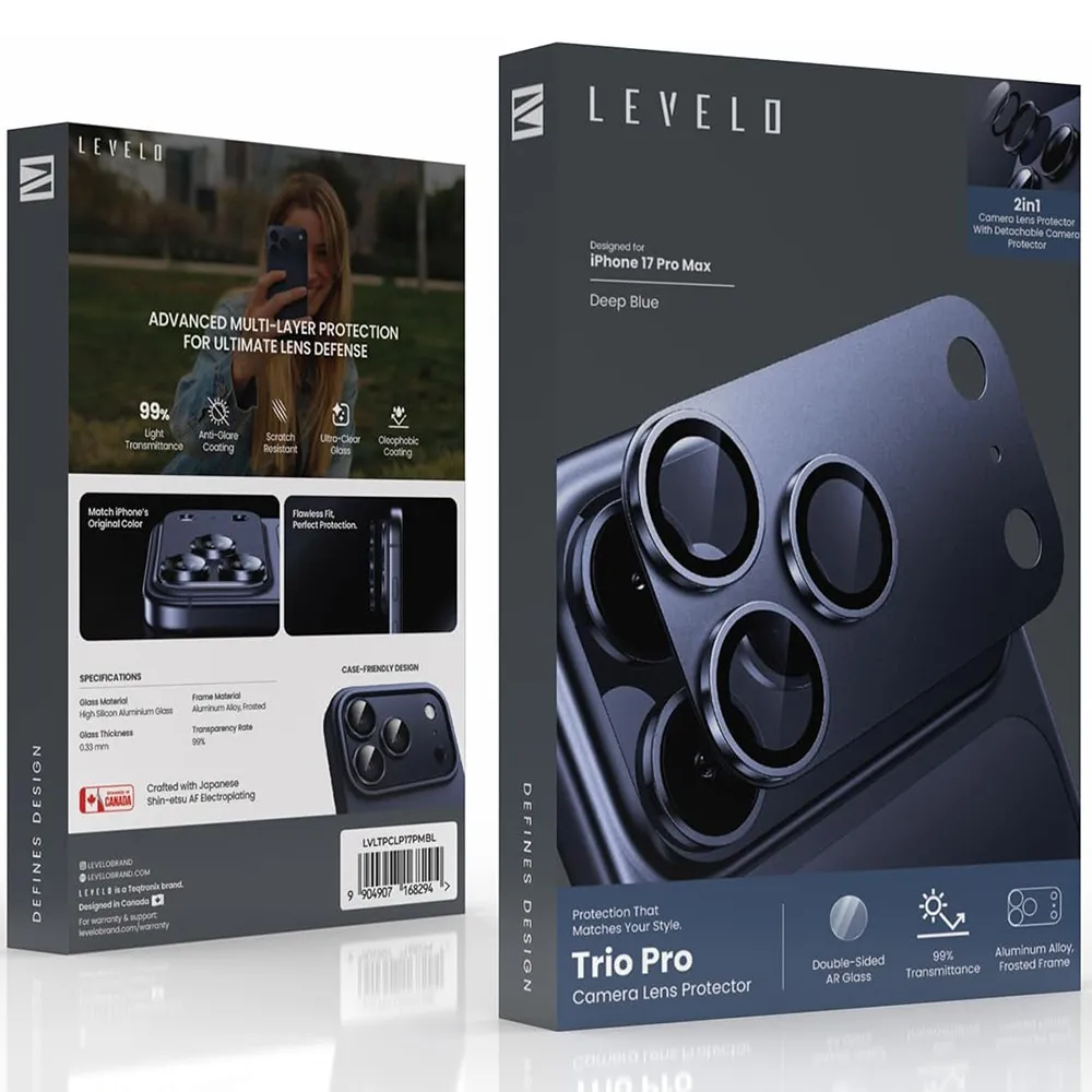 Levelo Trio Pro 2-in-1 Kameralinsen-Schutzglas für iPhone 17 Pro Max Blau