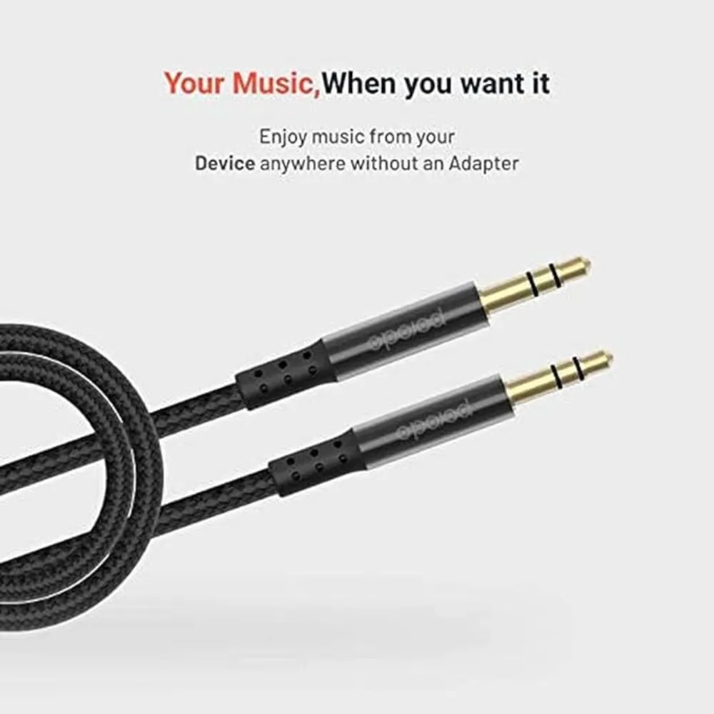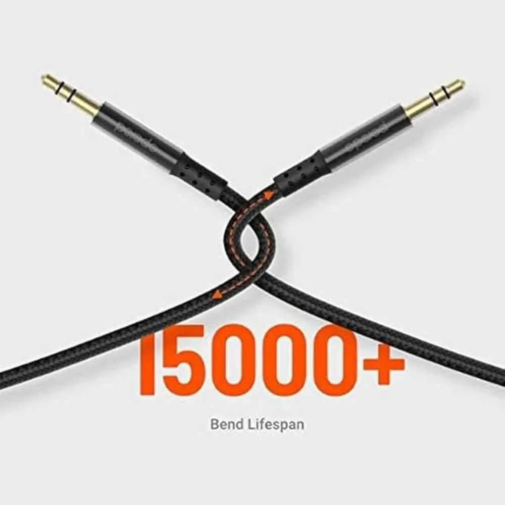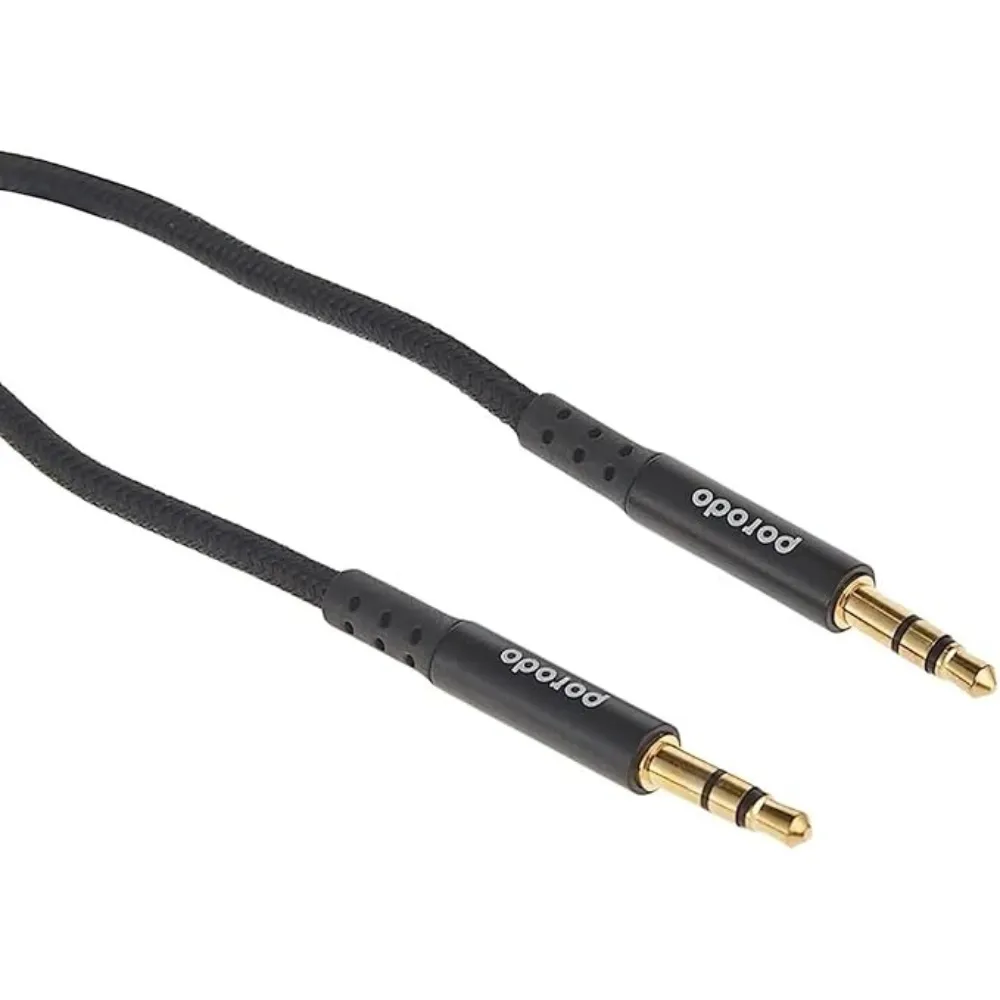 Porodo AUX-Kabel mit Metallgeflecht - Schwarz: Robuste Audioverbindung mit klarem Klang
