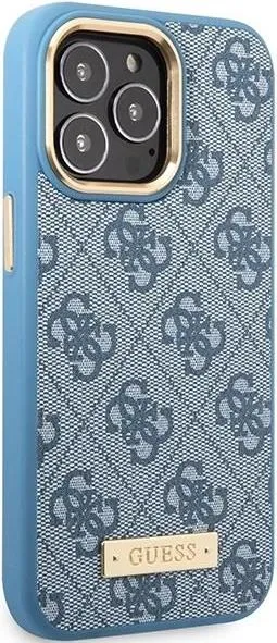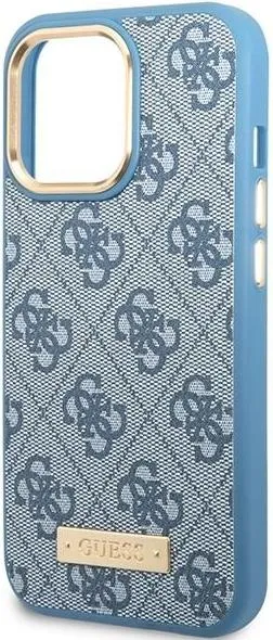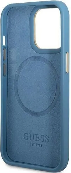 Guess Magsafe Hülle mit Metallplatten Logo für Apple iPhone 14 Pro – Blau