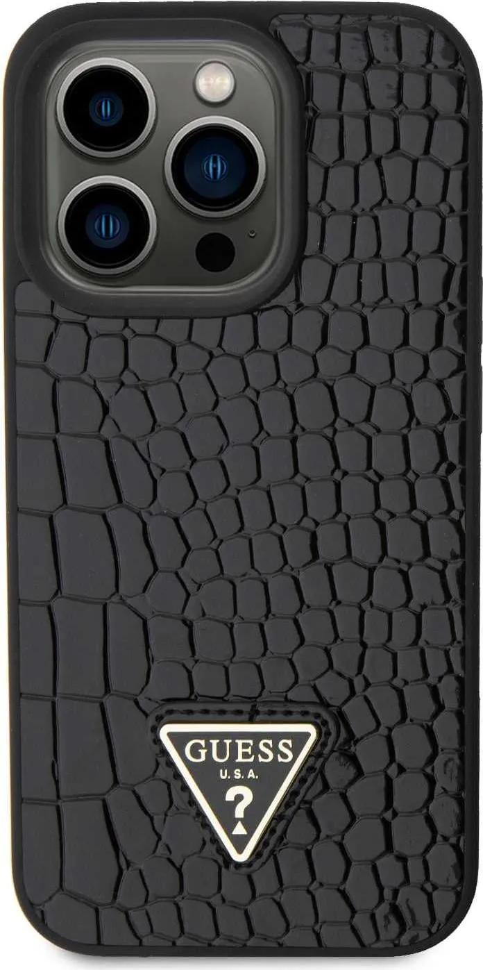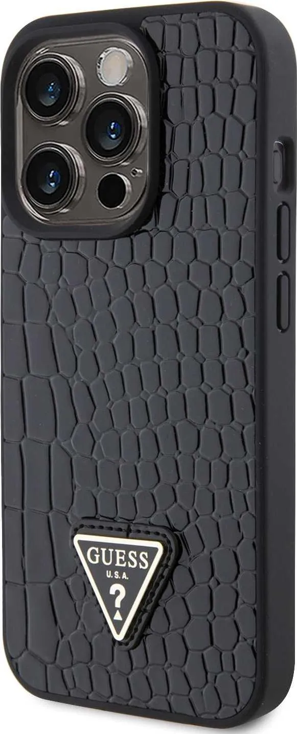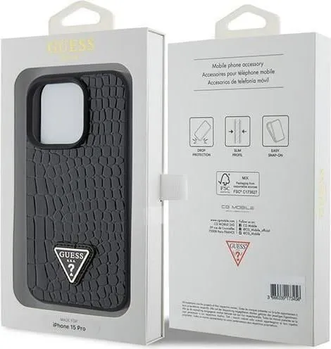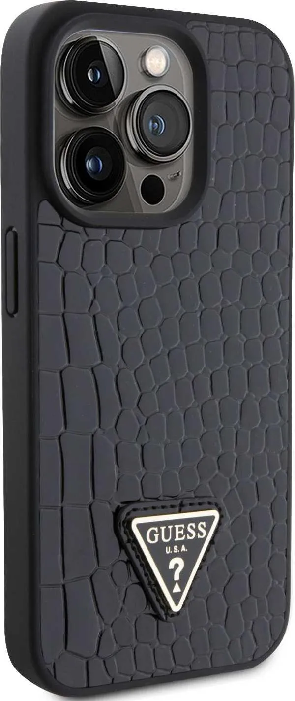 Guess Croco Case mit Dreieck-Logo für iPhone 15 Pro – Schwarz.