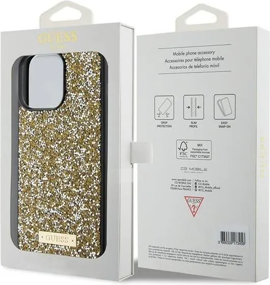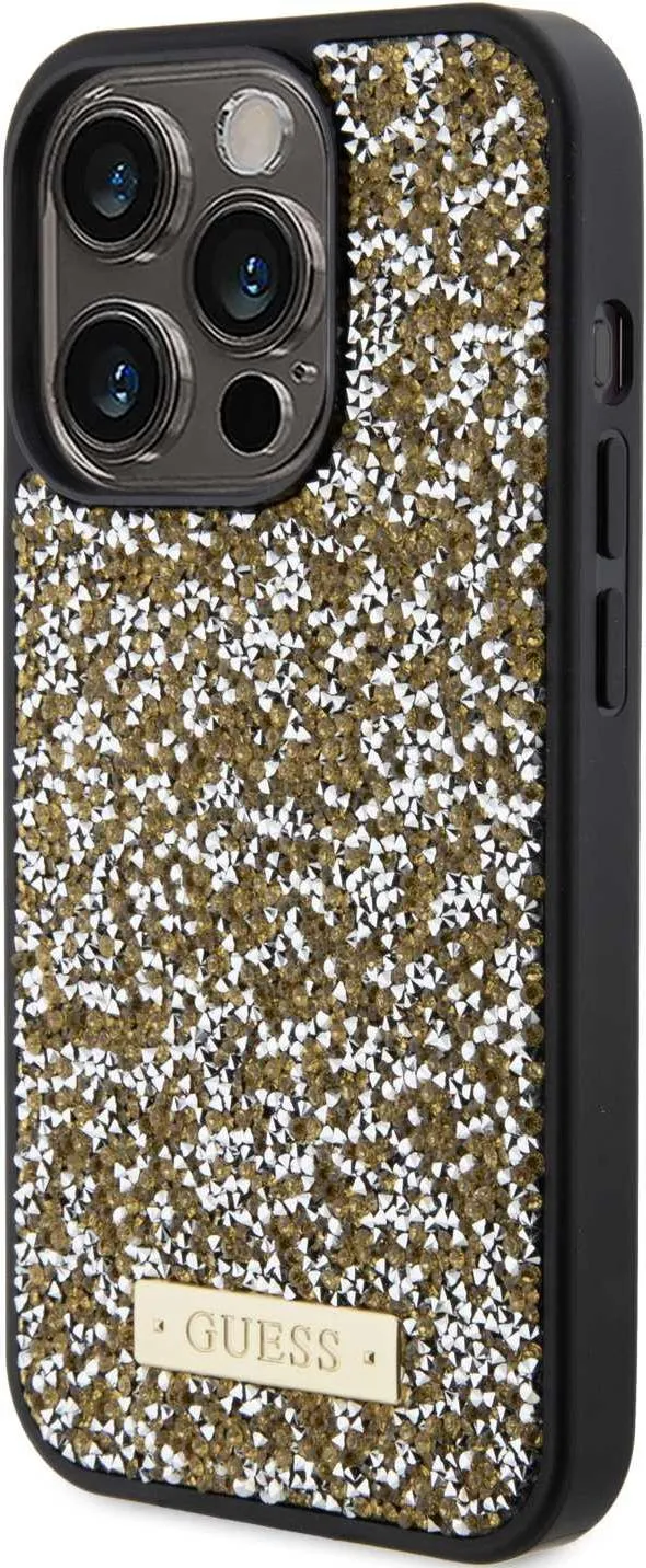 Mit den erhöhten Rändern, der kratzfesten Oberfläche und der robusten Hartschalenstruktur bietet dieses Case alles, was Sie für den täglichen Gebrauch brauchen. Wenn Sie ein modisches, robustes und praktisches Case suchen, das gleichzeitig Schutz und Komfort bietet, ist das Guess Rhinestone Case with Metal Logo for iPhone 15 Pro Max - Yellow die perfekte Wahl.