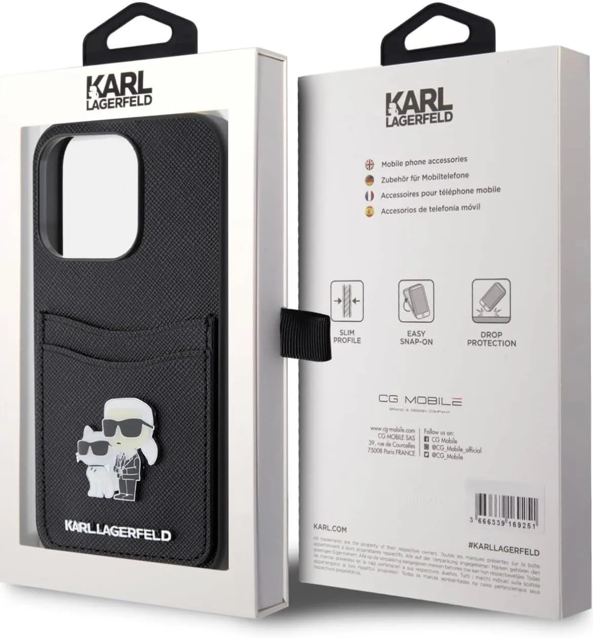 Saffiano-Etui mit Kartenfächern und Choupette-Köpfen von Karl Legerfeld.