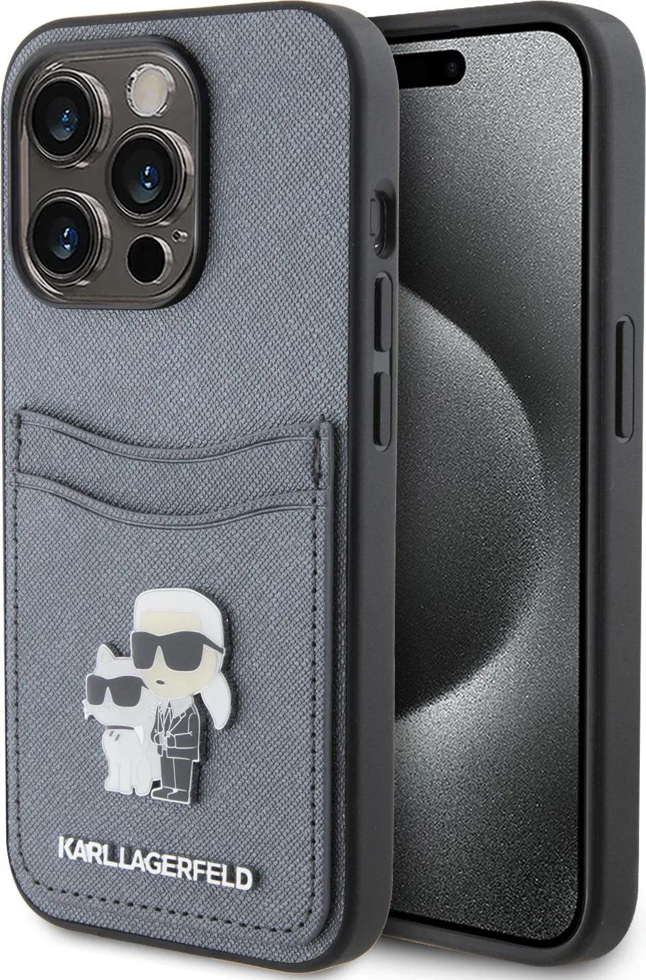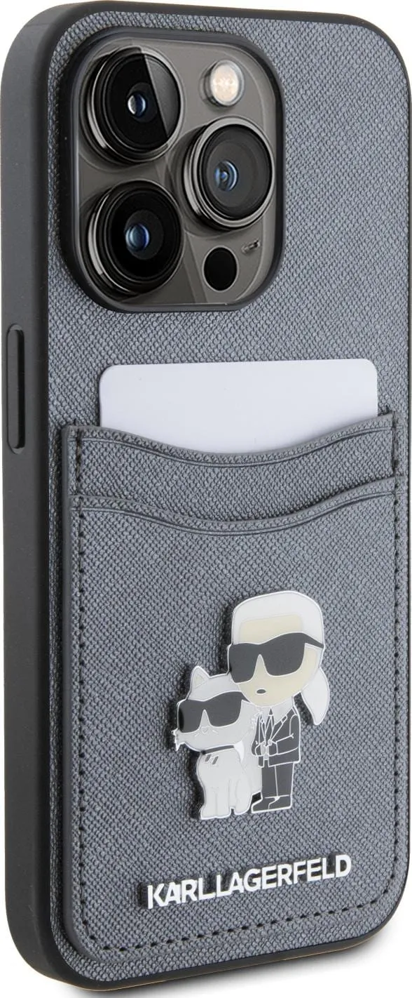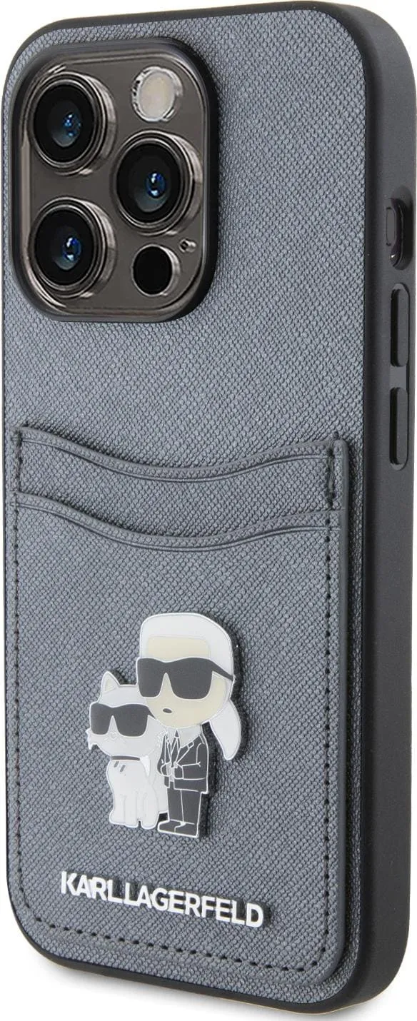 Das Karl Lagerfeld Saffiano Case with Cardslots and Karl Legerfeld Choupette Heads For iPhone 15 Pro Max sorgt dafür, dass Ihr iPhone sowohl sicher als auch modisch bleibt.