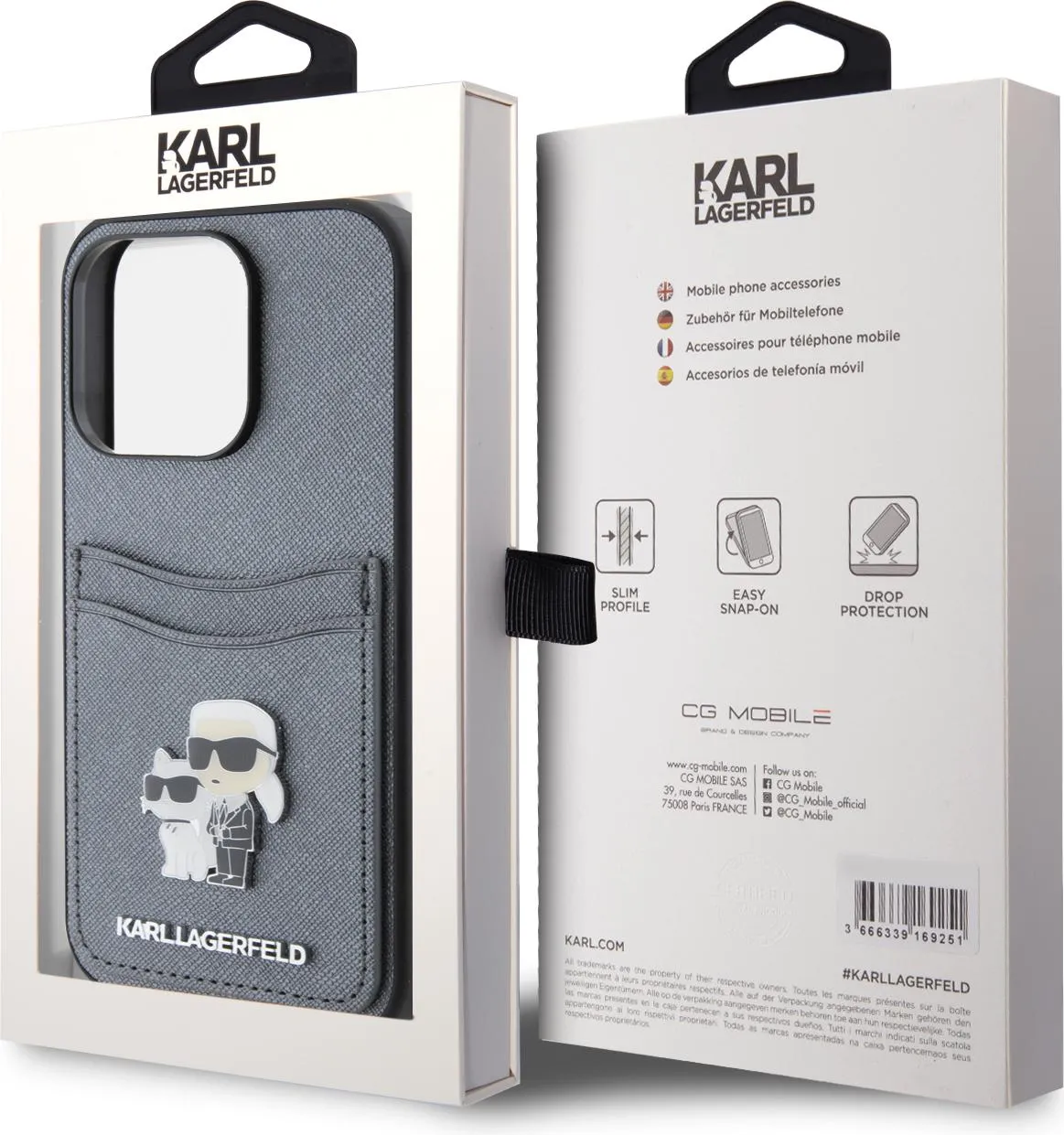 Ein herausragendes Merkmal des Karl Lagerfeld Saffiano Case with Cardslots and Karl Legerfeld Choupette Heads For iPhone 15 Pro Maxs ist das praktische Kartenfach auf der Rückseite. Das Case verfügt über zwei Kartenfächer, in denen Sie bequem Kreditkarten, Ausweise oder Bargeld aufbewahren können. Diese Funktion ermöglicht es Ihnen, Ihre wichtigsten Karten immer griffbereit zu haben, ohne eine separate Geldbörse mitführen zu müssen.