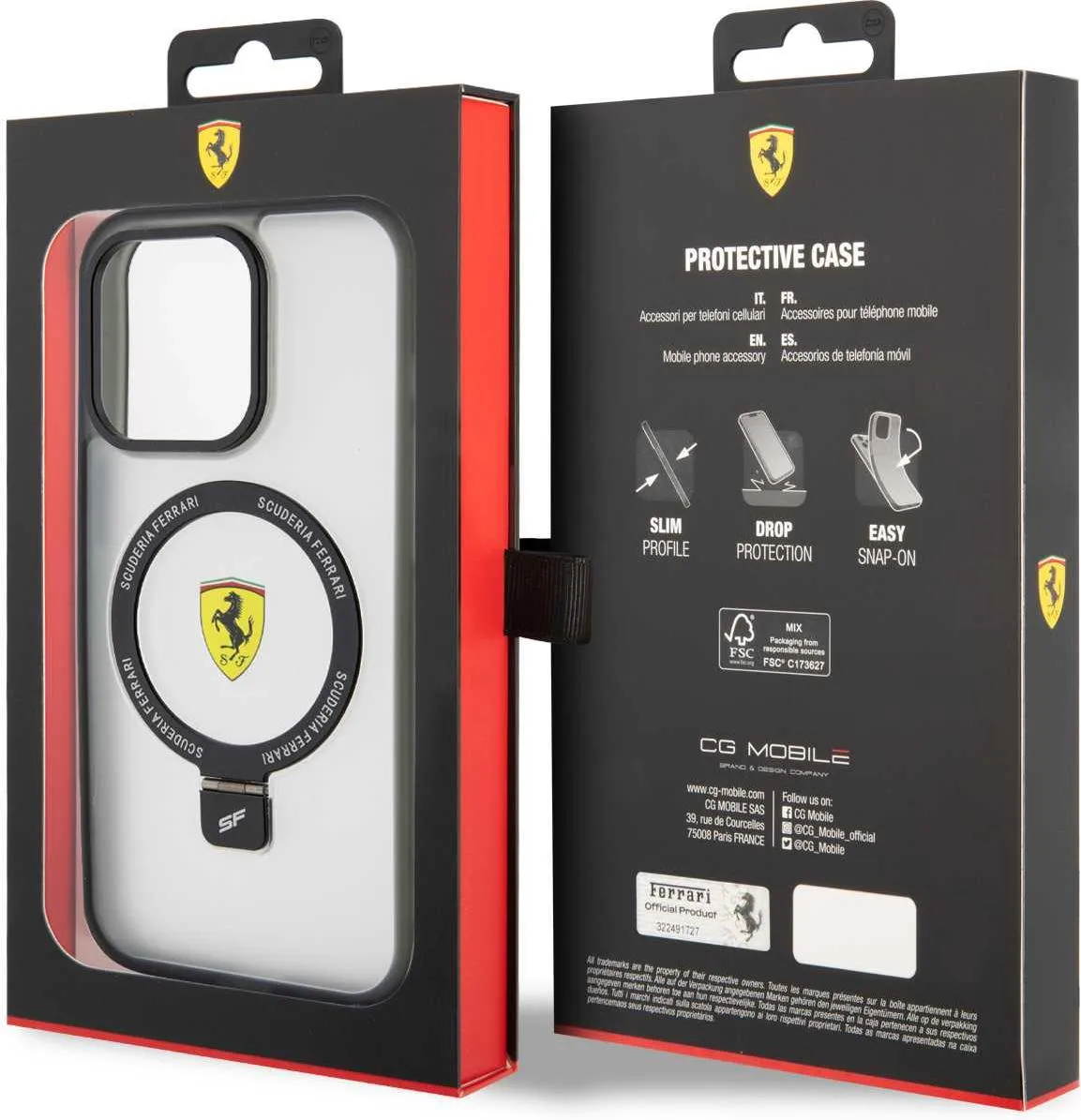 - Ferrari Magsafe Ring Stand Hülle für Apple iPhone 15 Pro Max – Transparent