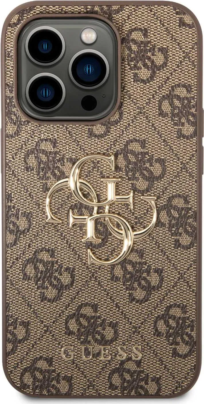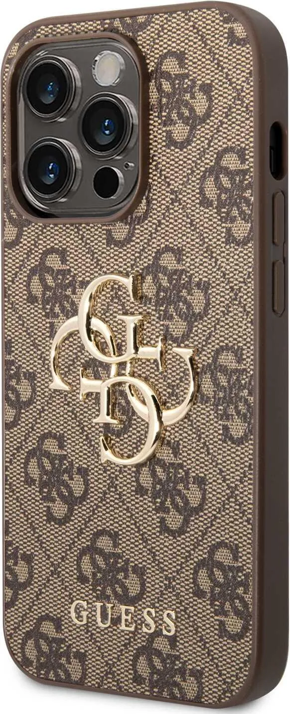Guess PU-Lederhülle mit 4G-Metalllogo für iPhone 15 Pro – Braun.