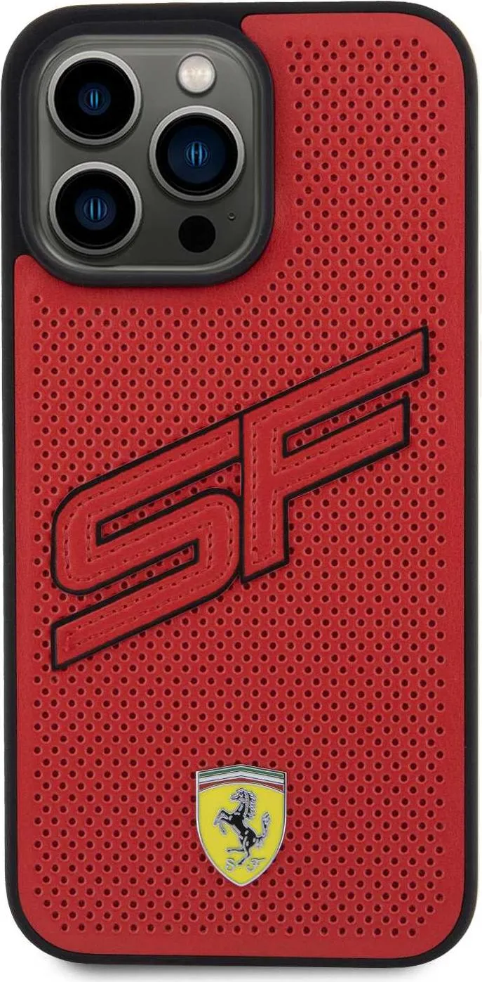 - Ferrari Lederhülle mit SF-Perforationsdesign für Apple iPhone 15 Pro – Rot