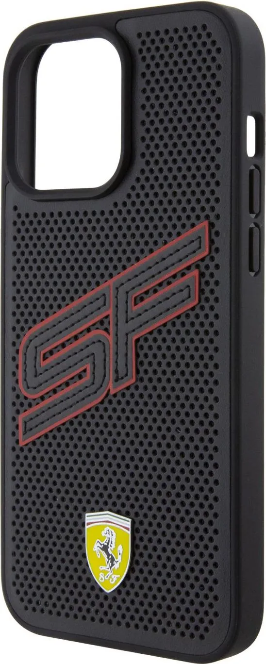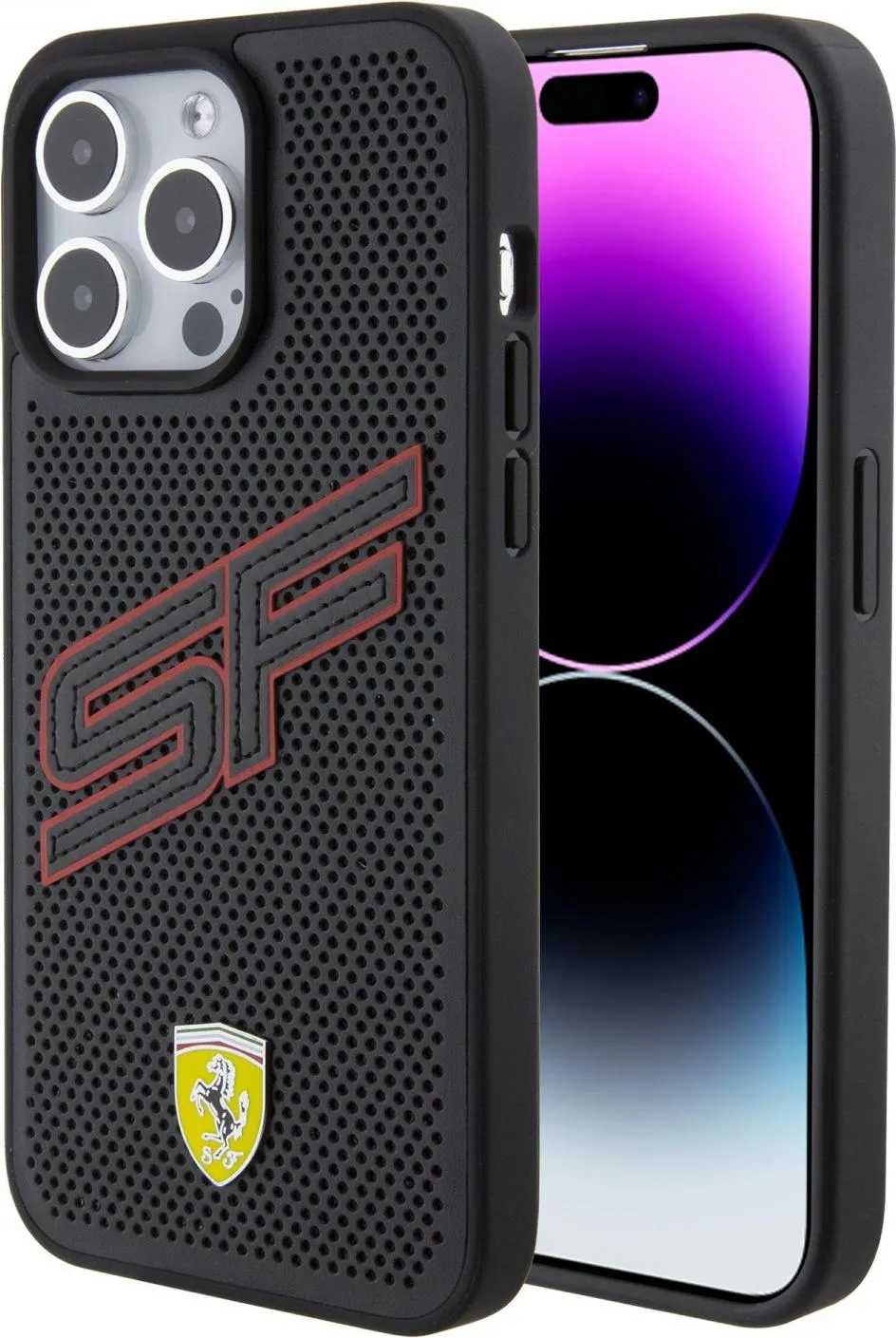 Ferrari Lederhülle mit SF-Perforationsdesign für Apple iPhone 15 Pro – Schwarz