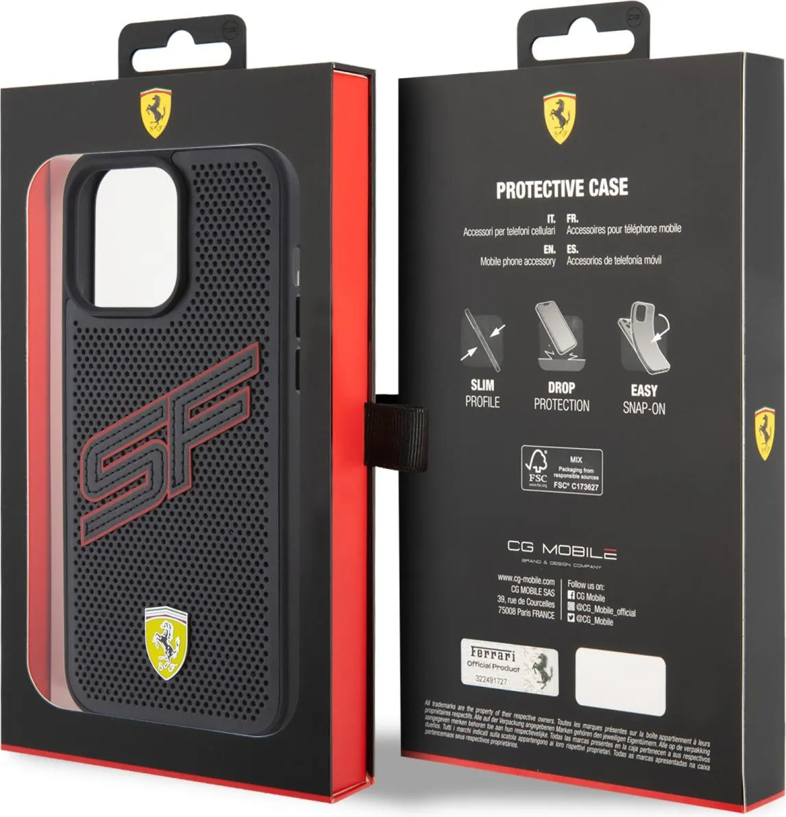 - Ferrari Lederhülle mit SF-Perforationsdesign für Apple iPhone 15 Pro – Schwarz