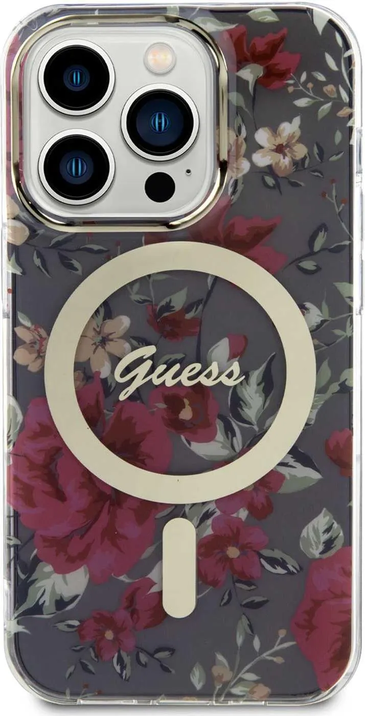Guess Magsafe IML-Hülle mit Blumenmuster für iPhone 15 Pro – Persimmon.