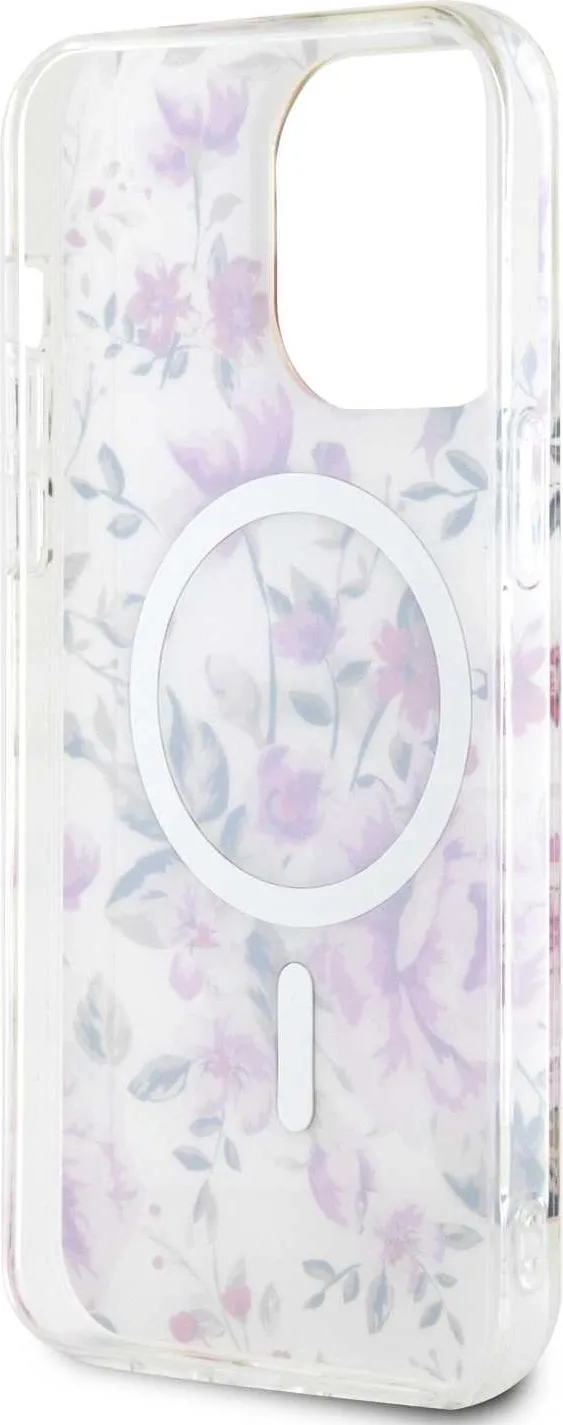 Guess Magsafe Hülle Blumenmuster für Apple iPhone 15 Pro – Transparent