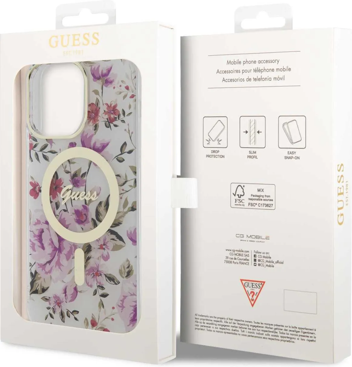 - Guess Magsafe Hülle Blumenmuster für Apple iPhone 15 Pro – Transparent