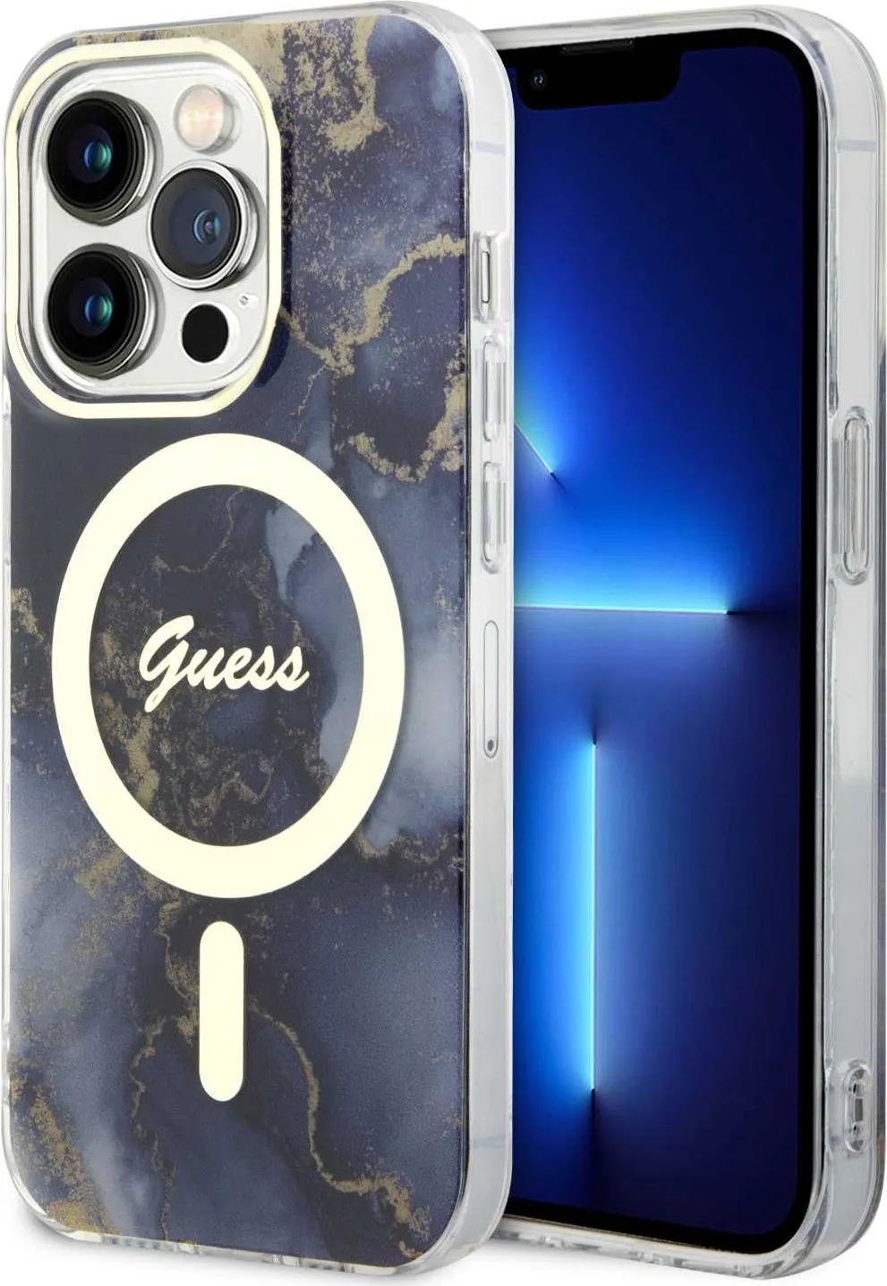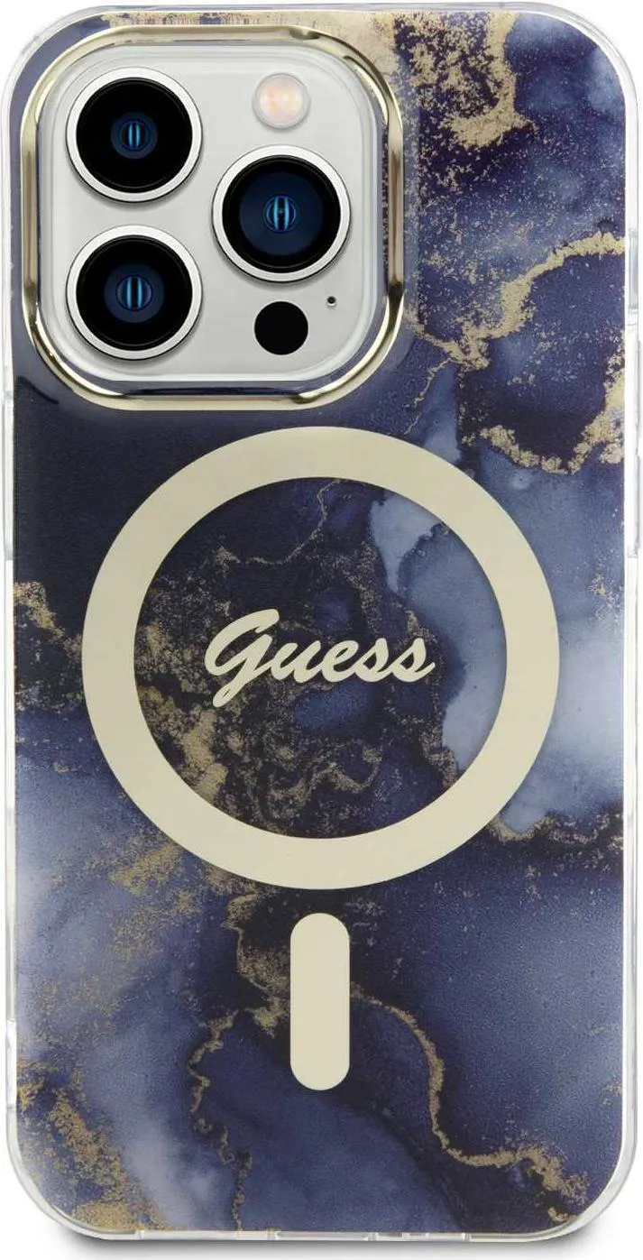 - Guess Magsafe Hülle Marble Edition für Apple iPhone 15 Pro – Blau