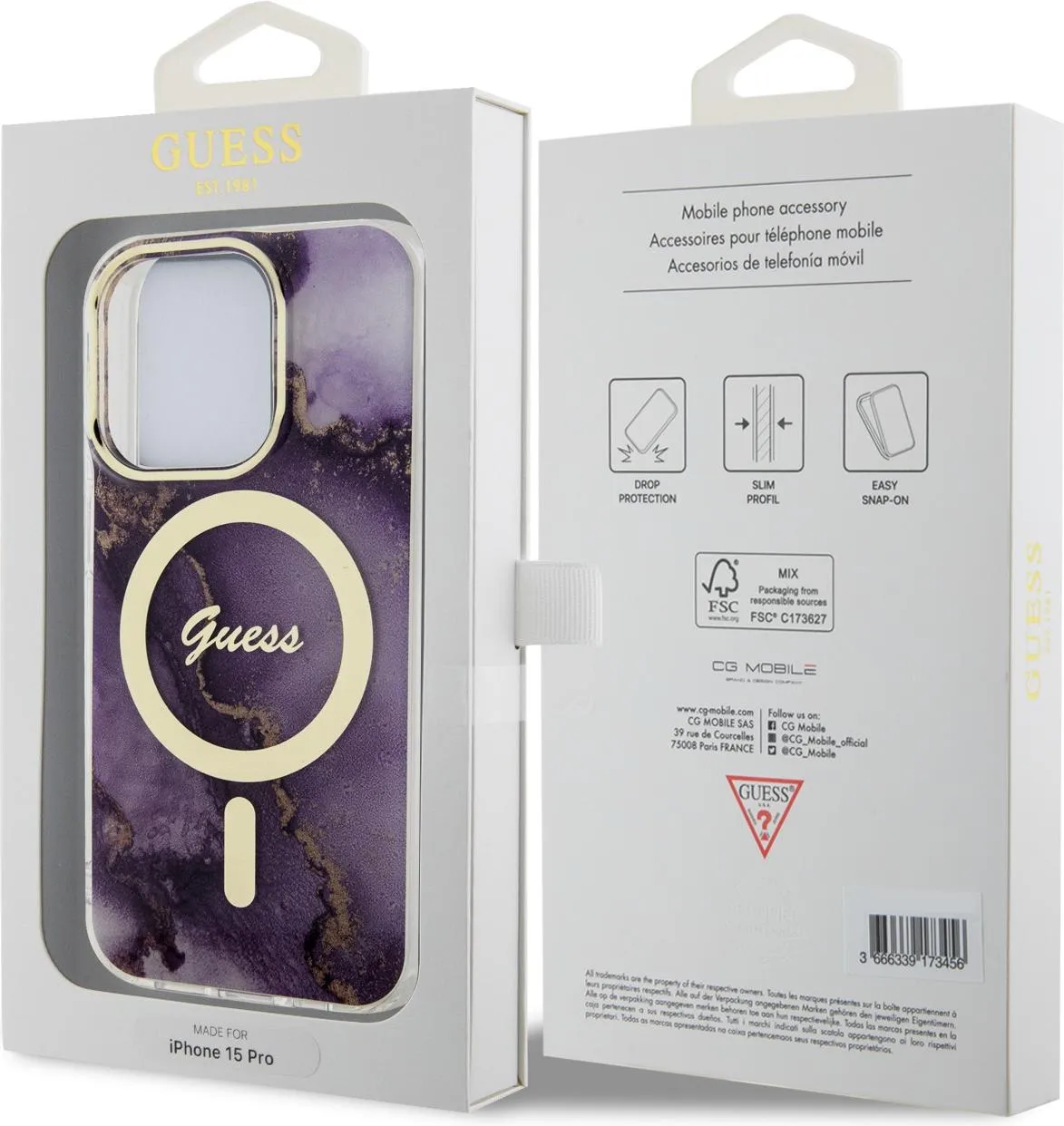 - Guess Magsafe Hülle Marble Edition für Apple iPhone 15 Pro – Lila