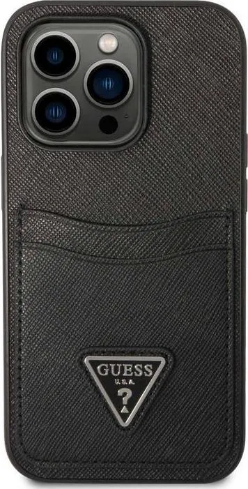Guess Saffiano Hülle doppeltes Kartenfach für Apple iPhone 15 Pro Max – Schwarz