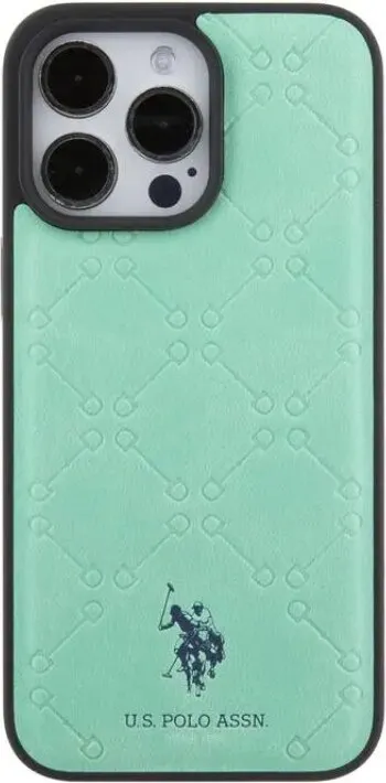 - US Polo Lederhülle für Apple iPhone 15 Pro – Grün