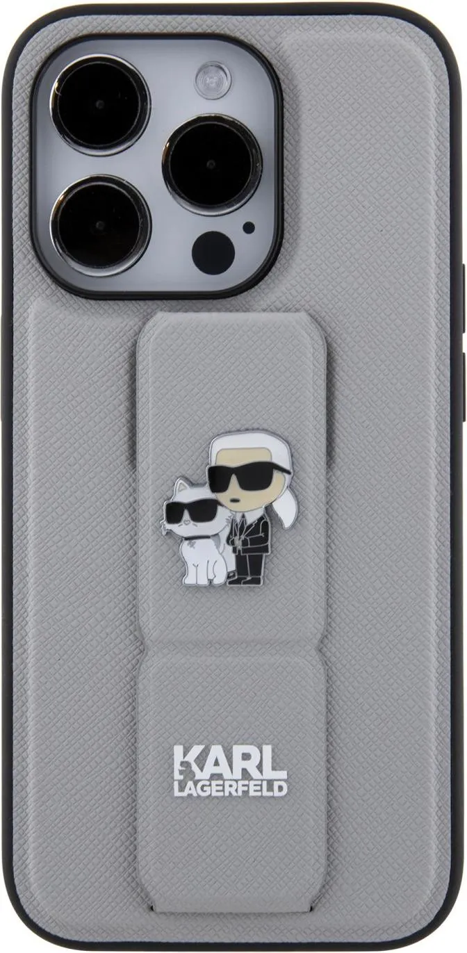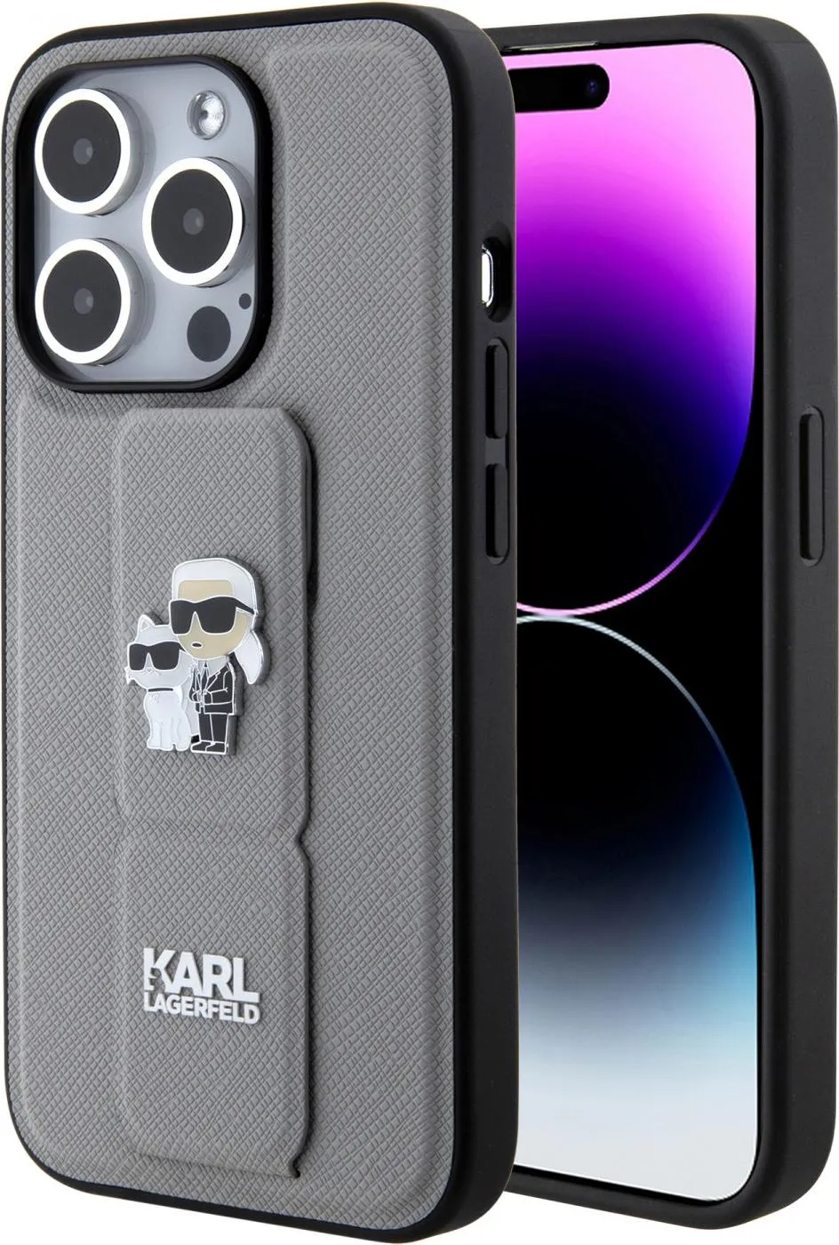 Karl Lagerfeld Leder Grip Hülle für Apple iPhone 15 Pro – Silber