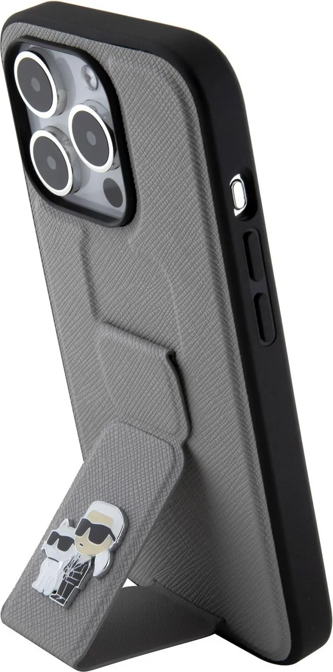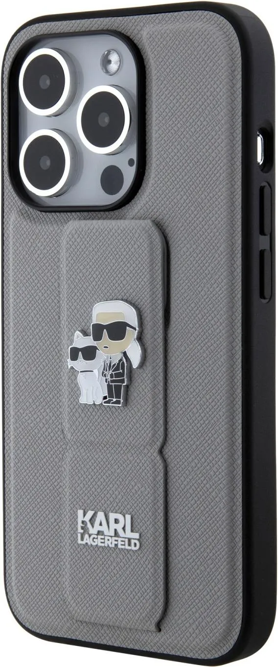 - Karl Lagerfeld Leder Grip Hülle für Apple iPhone 15 Pro – Silber