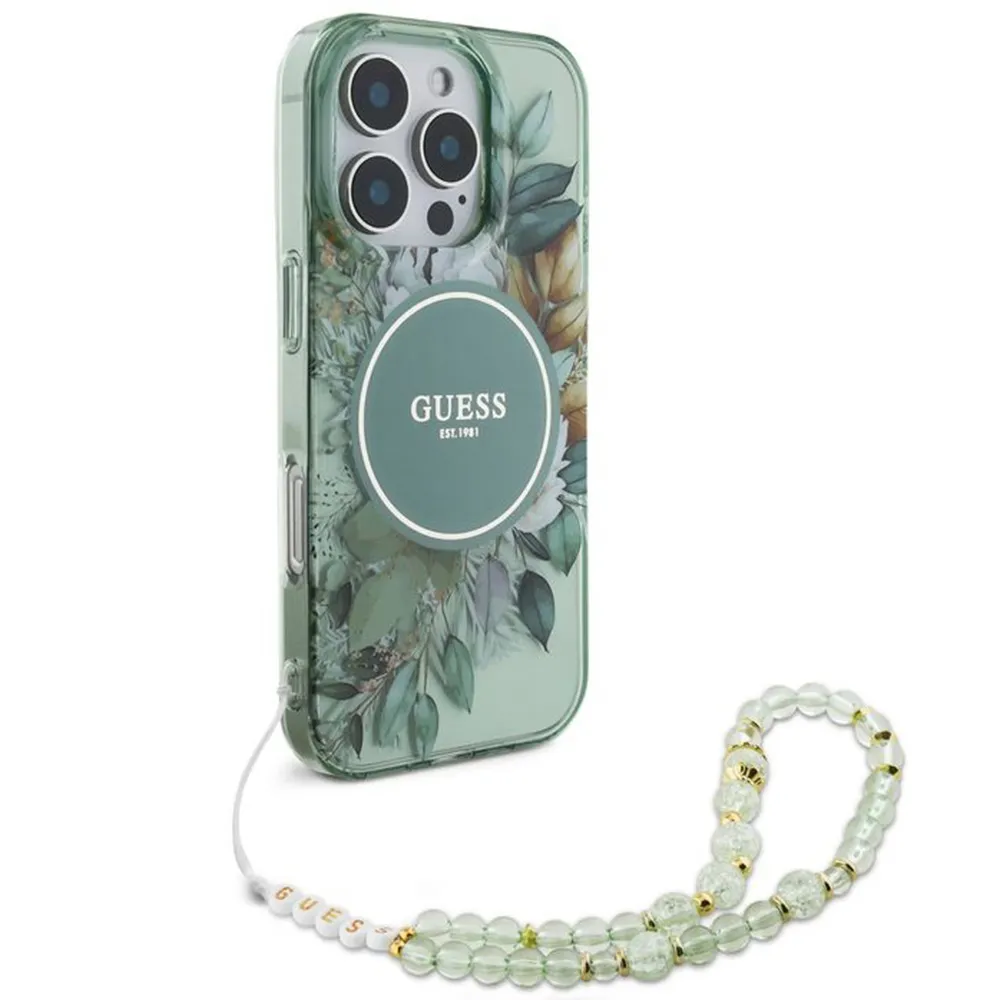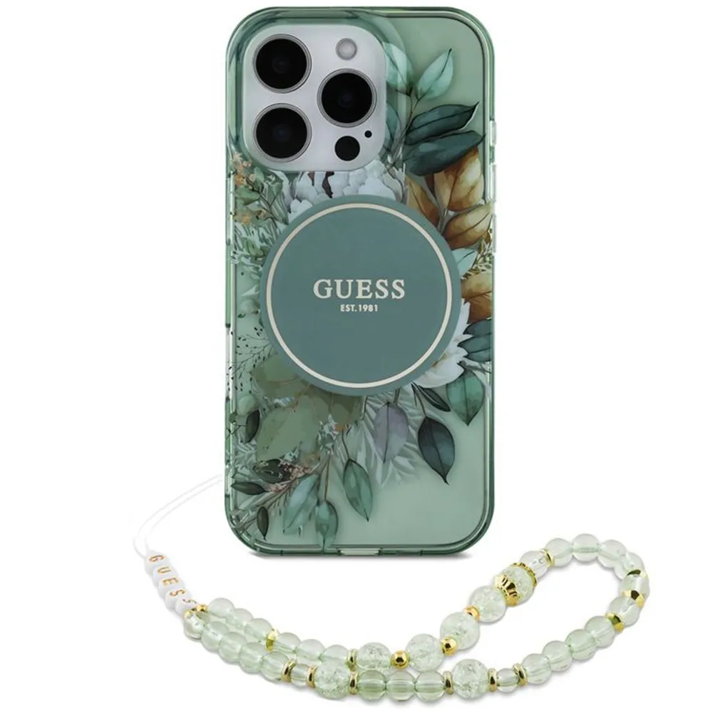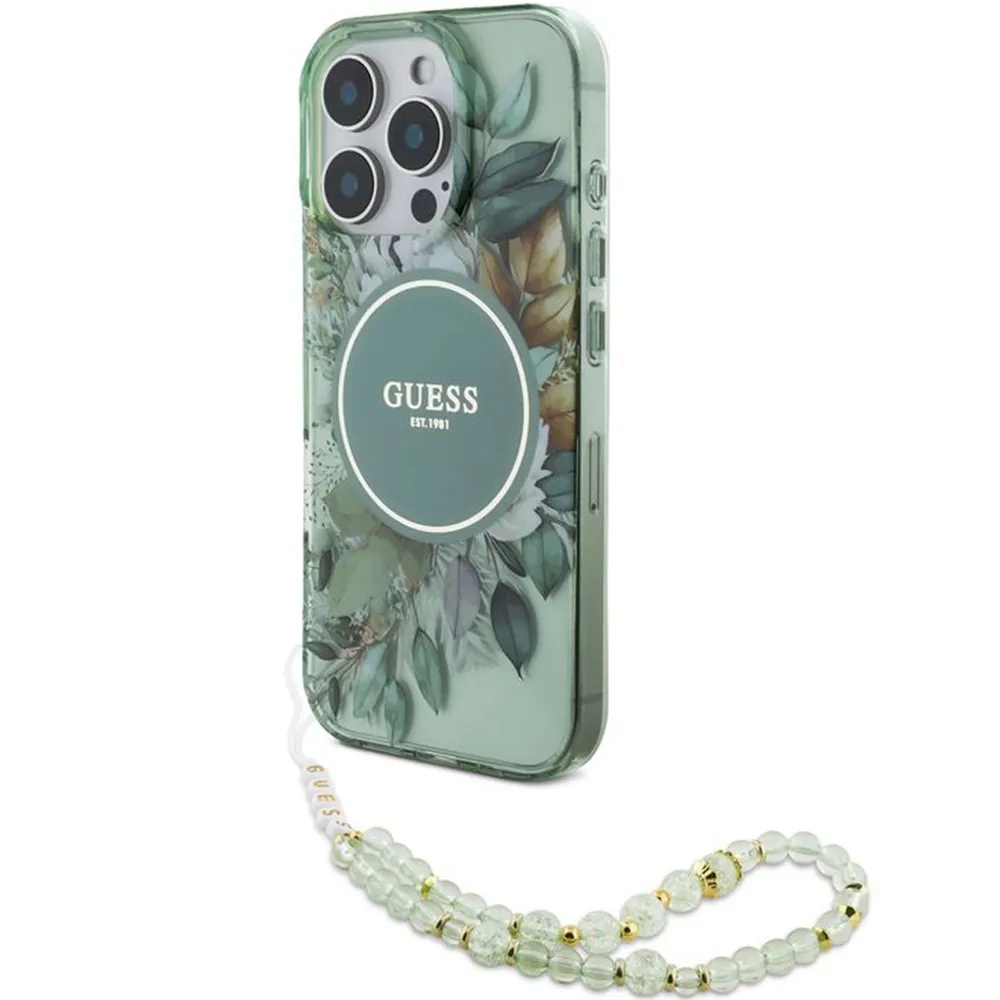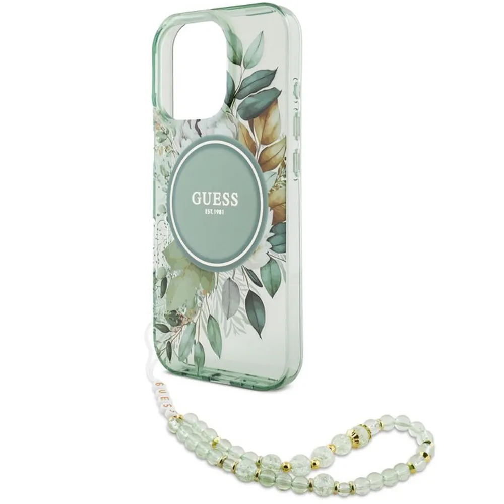 Das Guess Magsafe IML Hard Case With Flower Design & Pearl Strap For iPhone 16 Pro Max - Grün ist eine perfekte Kombination aus Schutz, Stil und Funktionalität. Mit einem auffälligen Blumen-Design und einem eleganten Beads Strap sorgt dieses Case nicht nur für zuverlässigen Schutz vor Stössen, Kratzern und Abrieb, sondern verleiht Ihrem iPhone 16 Pro Max auch einen modernen und modischen Look. Die MagSafe-Kompatibilität stellt sicher, dass Sie Ihr iPhone problemlos aufladen und mit MagSafe-Zubehör verwenden können, ohne das Case zu entfernen. In dieser detaillierten Beschreibung erfahren Sie alles über das Design, die Funktionen und die praktischen Vorteile dieses stilvollen iPhone-Cases.