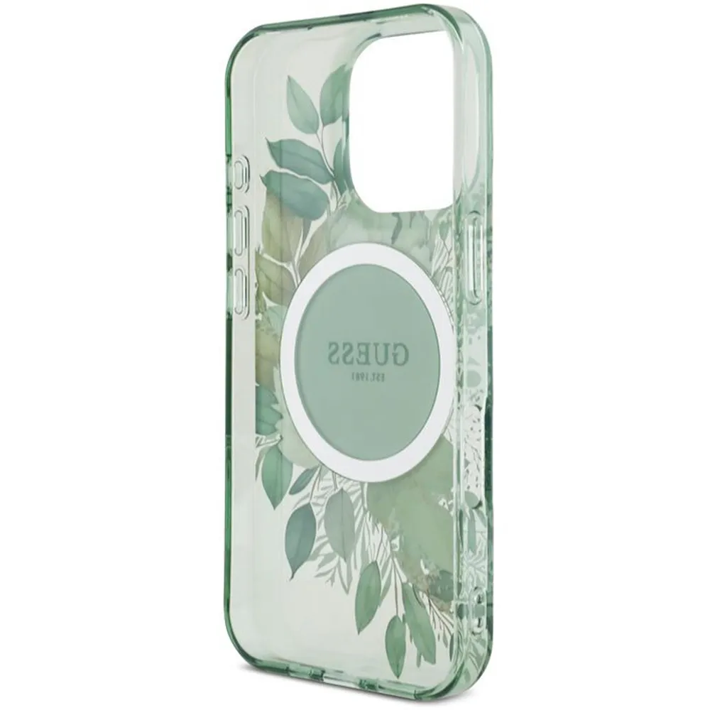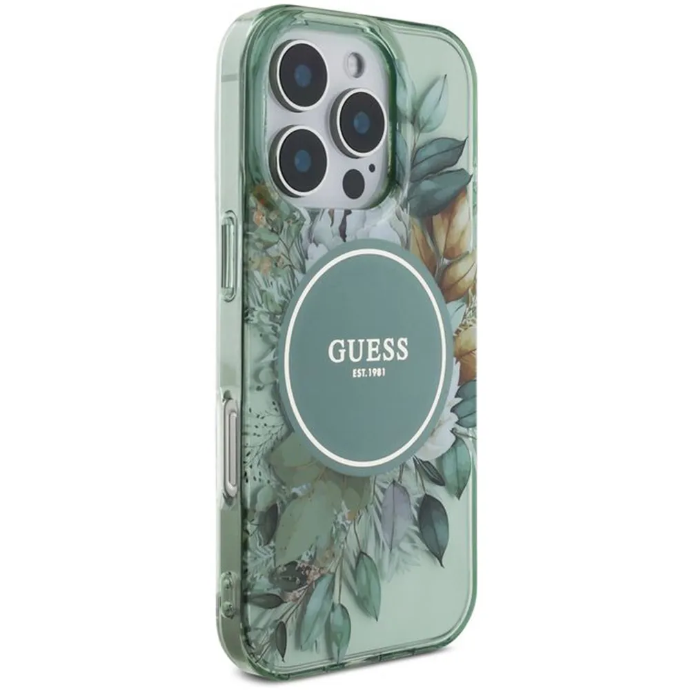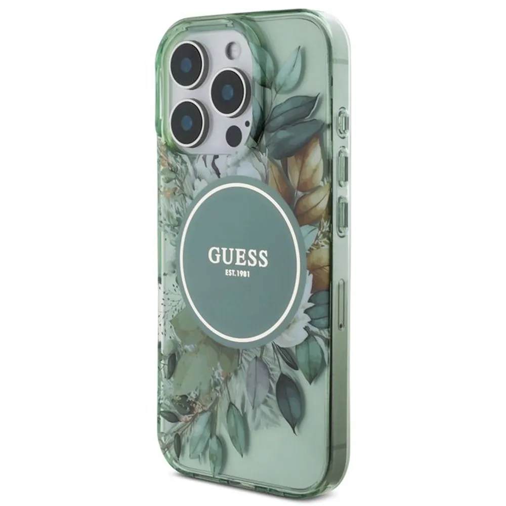Das Guess Magsafe IML Hard Case With Flower Design & Pearl Strap For iPhone 16 Pro Max besticht durch sein lebendiges, fröhliches Blumen-Design. Die IML-Technologie (In-Mold Labeling) sorgt dafür, dass das Design nahtlos in das Material des Cases integriert ist und gleichzeitig sehr widerstandsfähig bleibt. Das Grün als Grundfarbe, kombiniert mit den Blumenmotiven, gibt dem Case einen auffälligen, aber dennoch eleganten Look, der perfekt für trendbewusste iPhone-Nutzer geeignet ist.