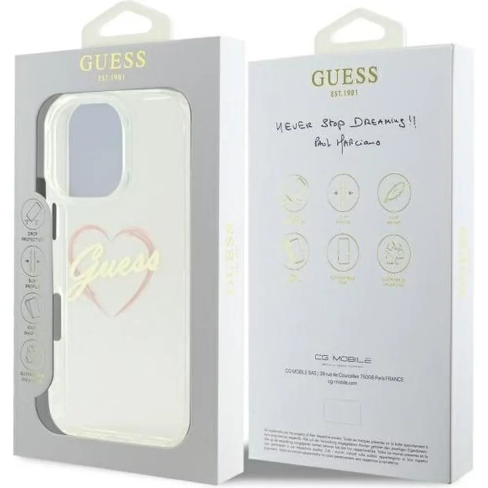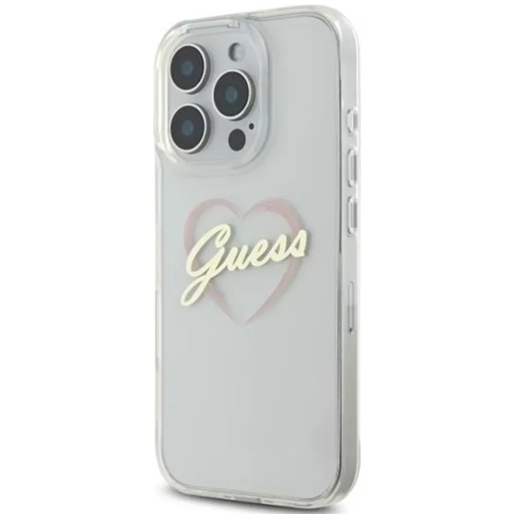 Guess Hardcase mit Herz Logo für Apple iPhone 16 Pro – Transparent