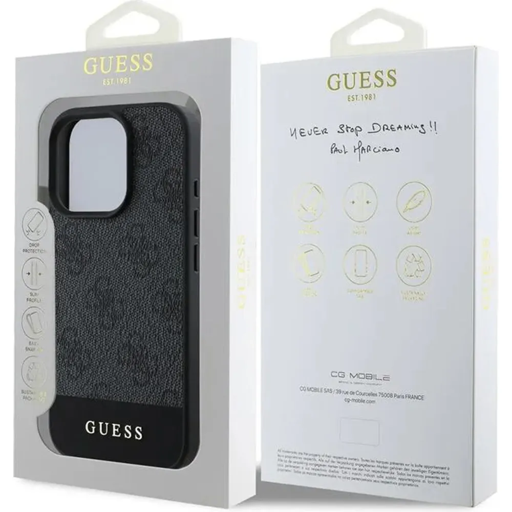 Mit dem Guess PU 4G Leather Hard Case for iPhone 16 Pro setzen Sie ein dezentes Fashion-Statement: