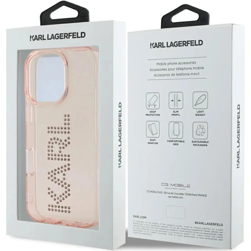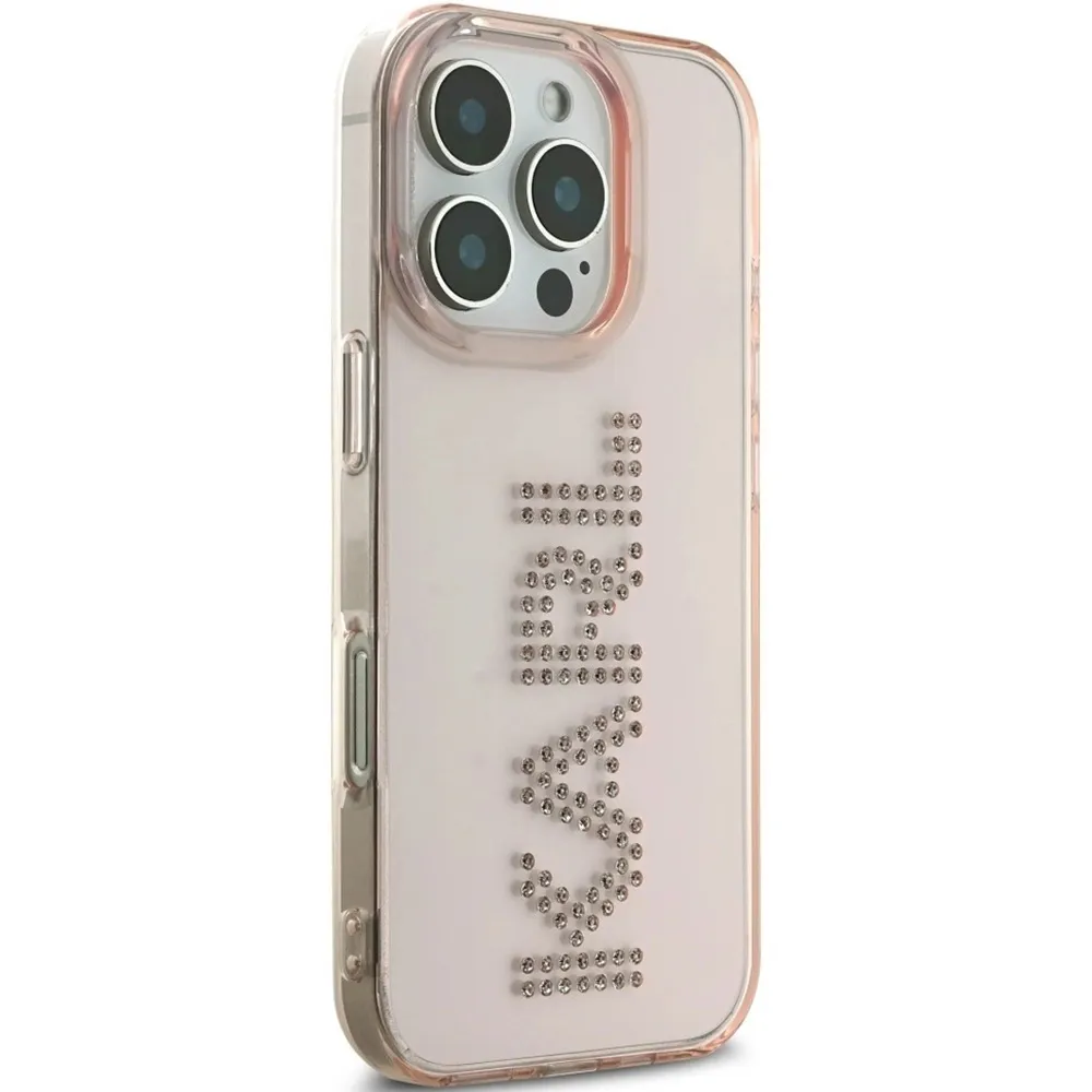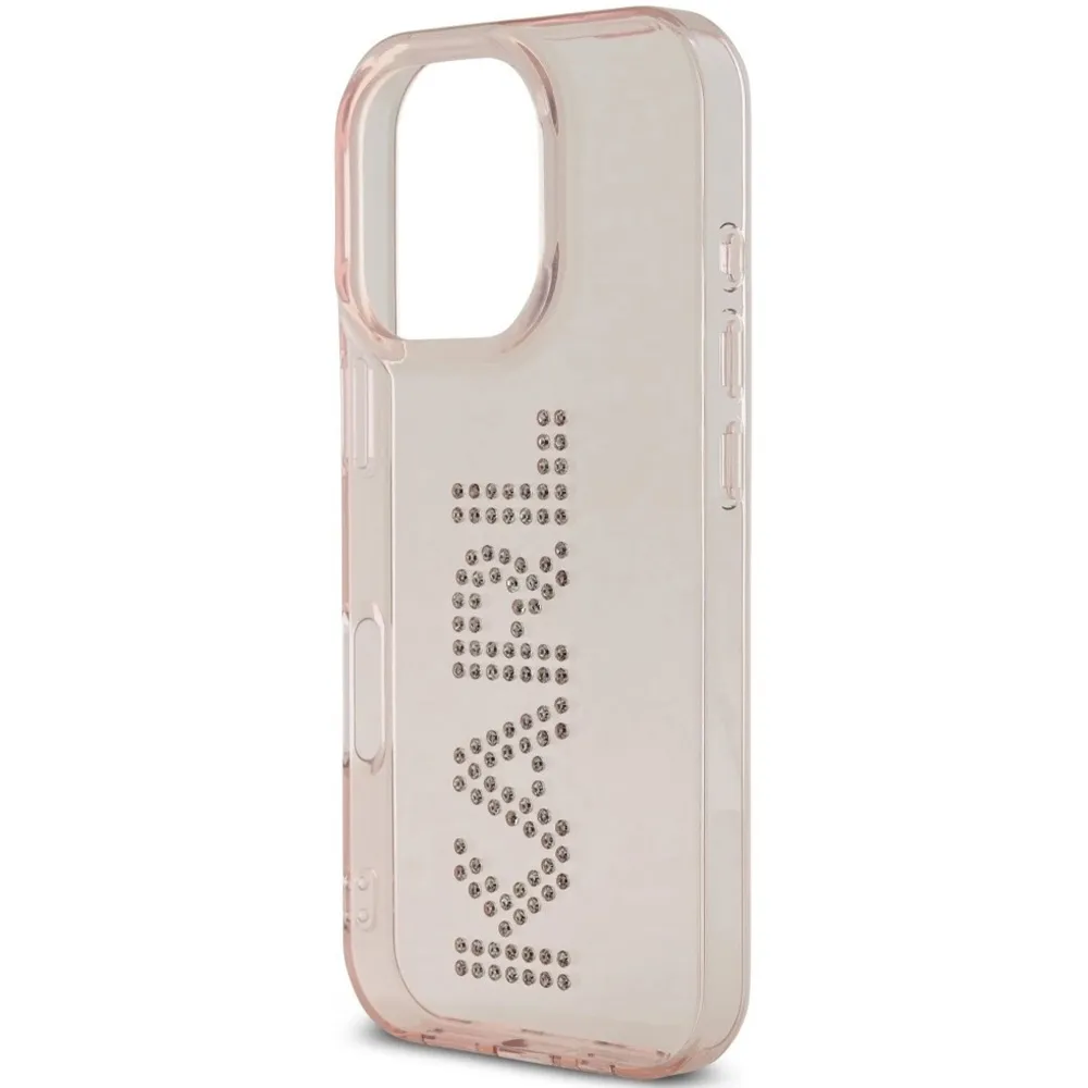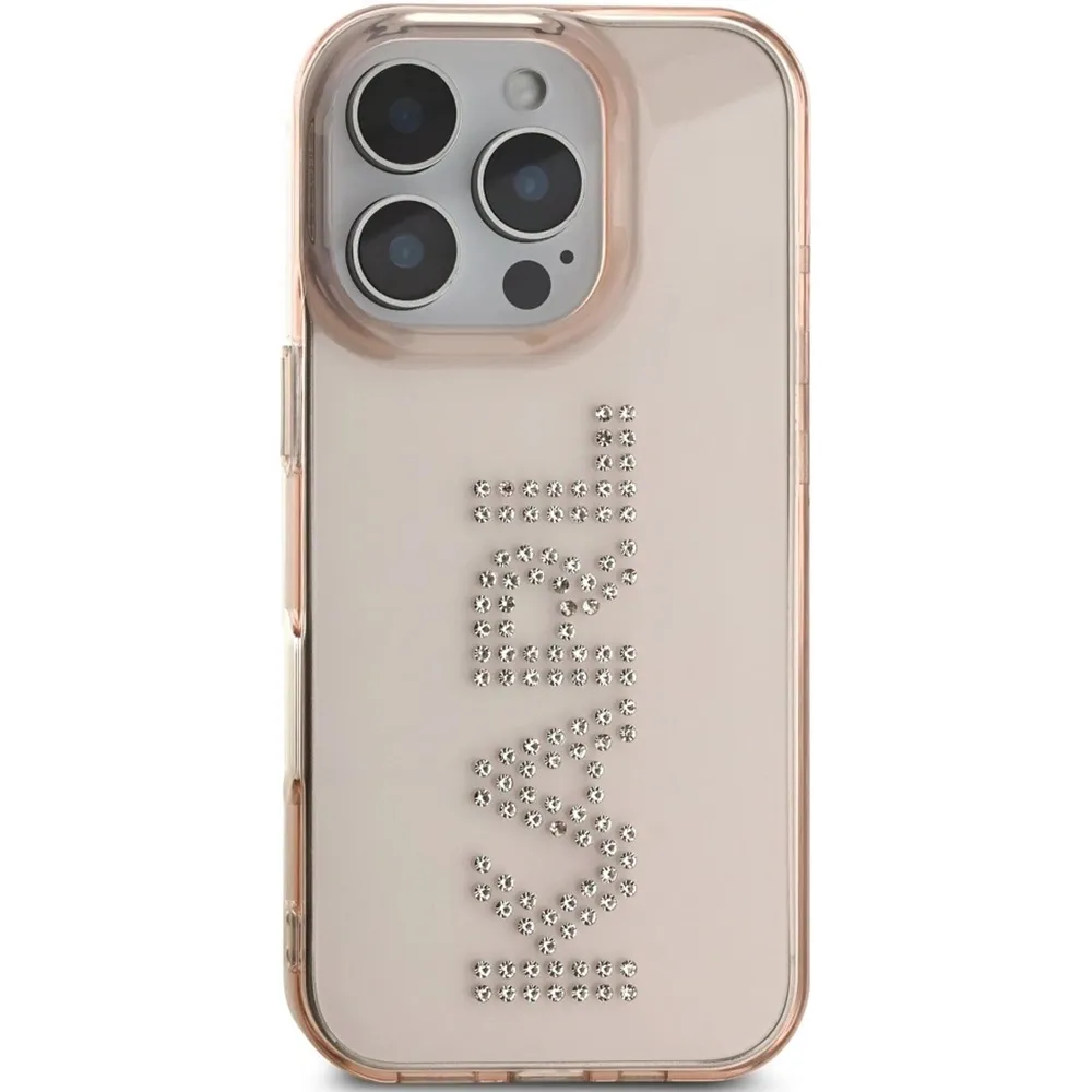 Karl Lagerfeld Hardcase mit Strass Logo für Apple iPhone 16 Pro – Pink
