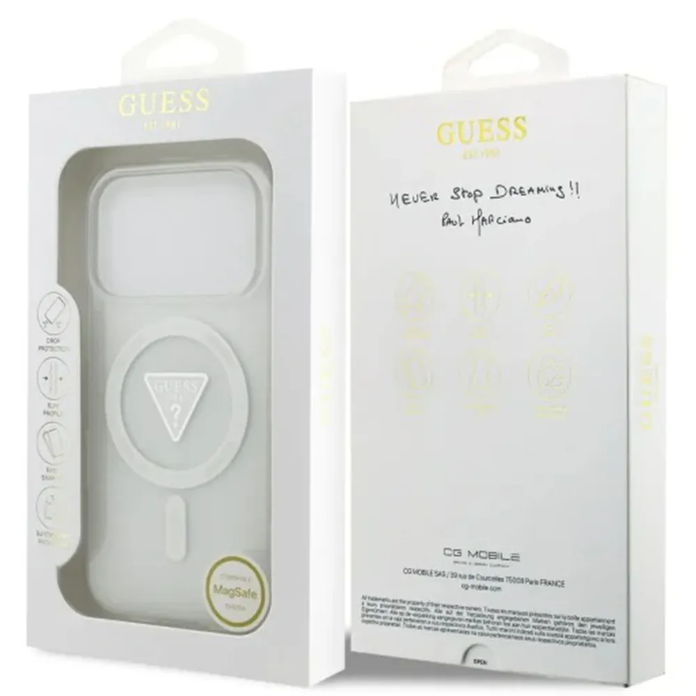 Die Guess MagSafe Hülle Apple iPhone 17 Pro wurde exakt für das iPhone 17 Pro entwickelt. Alle Aussparungen für Kamera, Lautsprecher, Anschlüsse und Tasten sind präzise gefertigt.