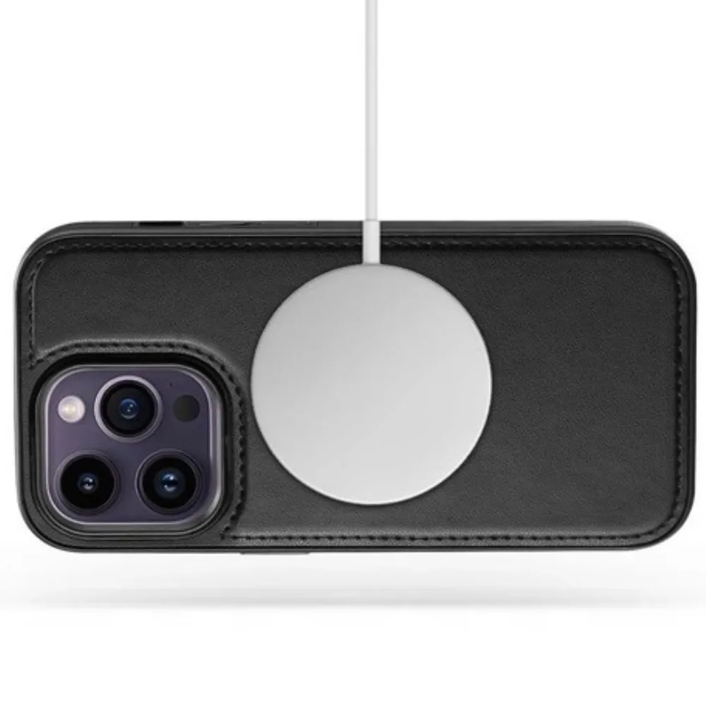 Das schwarze Design sorgt dafür, dass das Case zu jedem Anlass und in jeder Umgebung passt – es ist ideal für den Business-Alltag, die Freizeit oder für Geschäftsreisen, bei denen Sie Ihr iPhone stilvoll und sicher aufbewahren möchten.