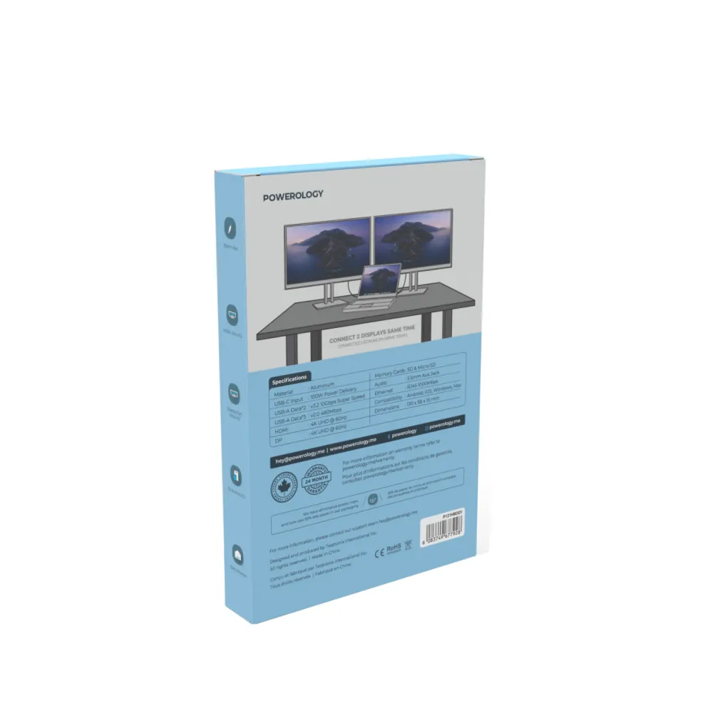 Der Powerology 12IN1 Dual HDMI & DP 4K USB-C Hub Ethernet ist ein All-in-One-Gerät, mit dem Sie alle Ihre Kabel organisieren können.