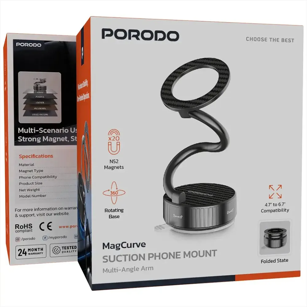 Diese Vielseitigkeit macht den Porodo MagCurve MagSafe Handyhalter S-Form mit Saugnapf Schwarz zu einem unverzichtbaren Bestandteil moderner Porodo Handy Halterungen.