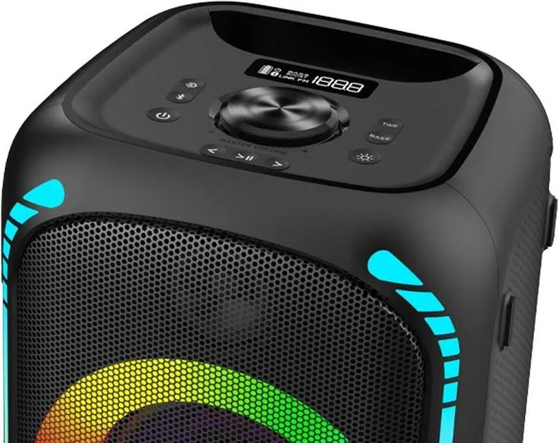 Die robuste Bauweise, gepaart mit einem eleganten Erscheinungsbild und zusätzlichen Features wie RGB-Lichteffekten, machen diesen Lautsprecher zu einem echten Highlight auf jeder Party und in jeder Umgebung. Ob in den eigenen vier Wänden, beim Outdoor-Event oder auf Geschäftsveranstaltungen – der Porodo 200W Party Speaker liefert stets einen kraftvollen, klaren und dynamischen Sound, der Ihre Musik und Multimedia-Inhalte in vollem Umfang zur Geltung bringt.