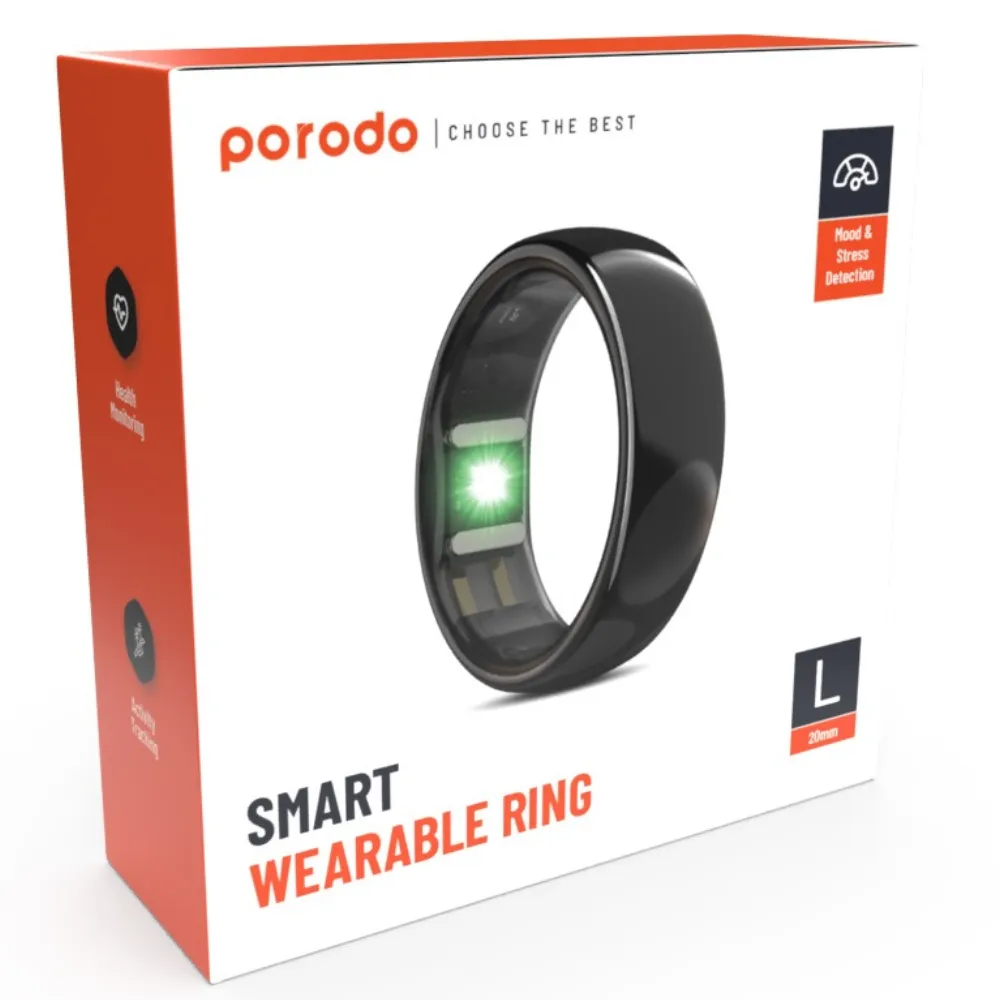 Porodo Smart Wearable Ring Grösse 8 - Schwarz: Stilvolles, modernes Design trifft auf smarte Technologie