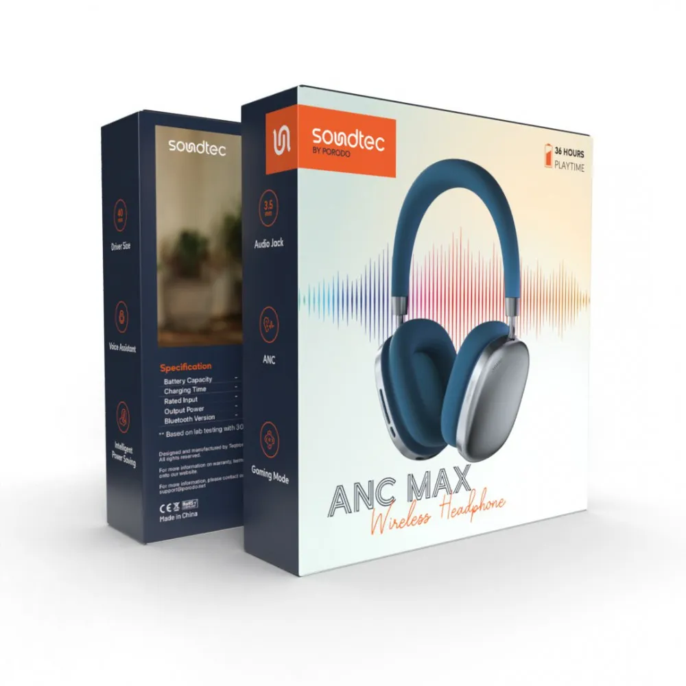 Ein zentraler Aspekt des Porodo Soundtec AirPodMax ANC Headphone ist seine exzellente Klangwiedergabe. Modernste Audiotreiber und präzise abgestimmte Klangprofile sorgen für ein immersives Hörerlebnis, das selbst höchste Ansprüche erfüllt.
