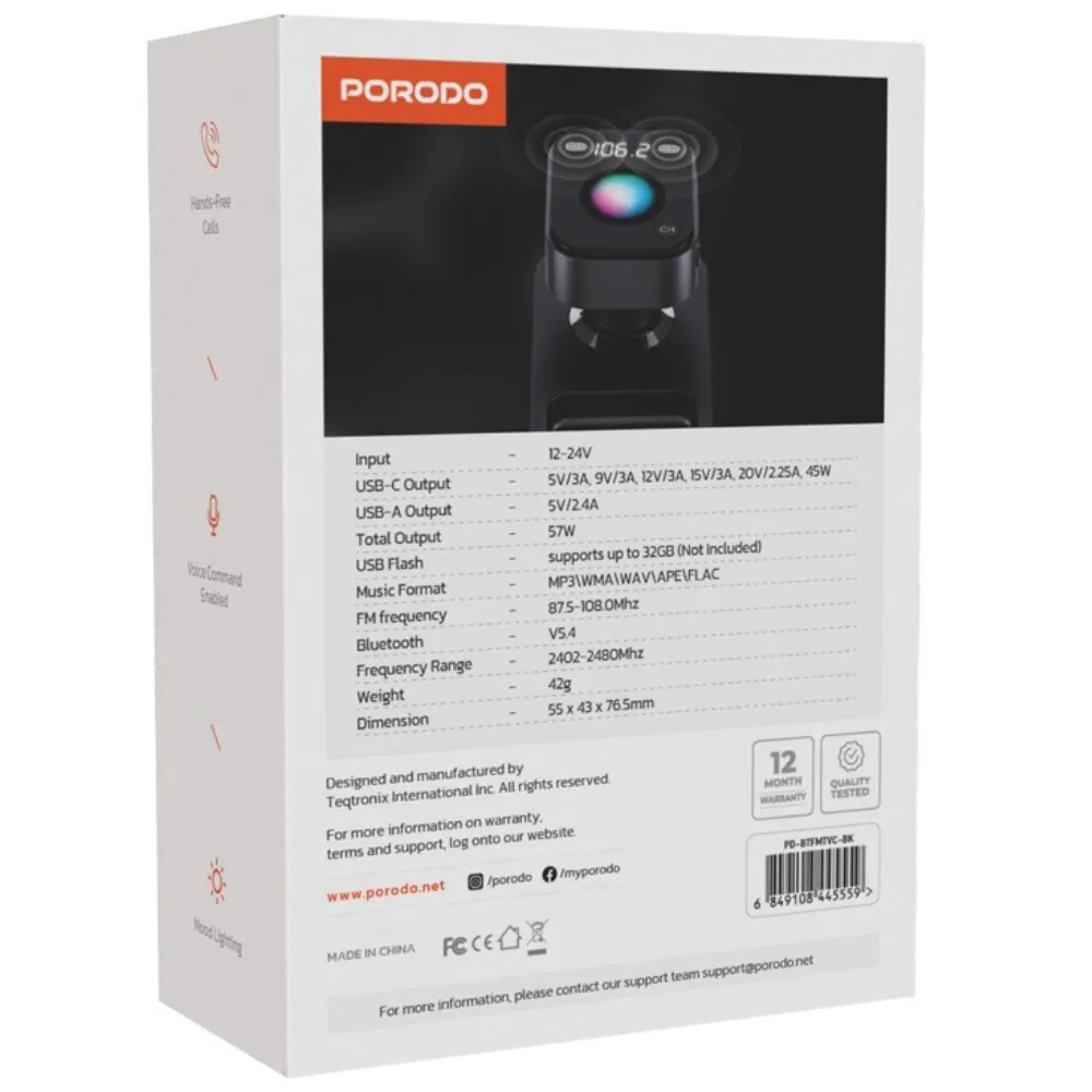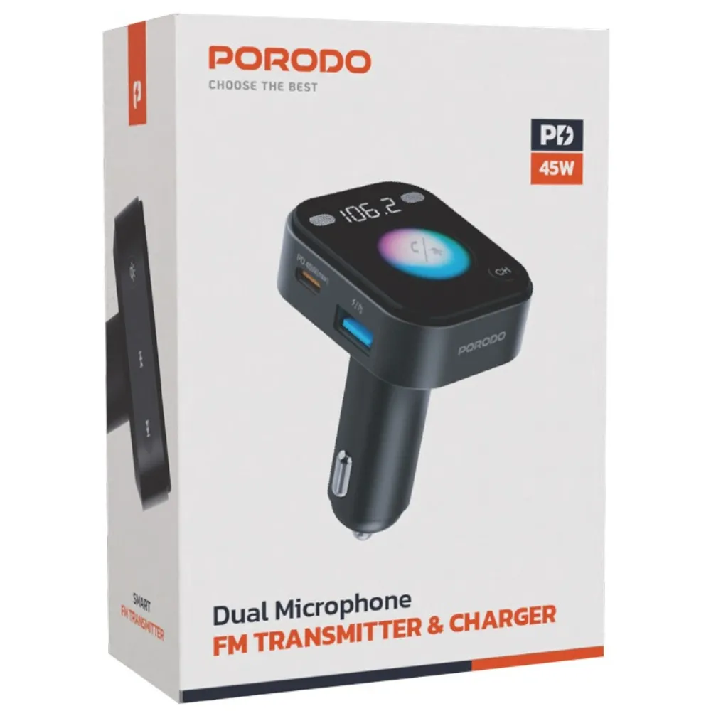 Der Porodo Bluetooth FM Transmitter - Schwarz ist nicht nur ein Audio-Tool, sondern auch ein leistungsstarkes Ladegerät: