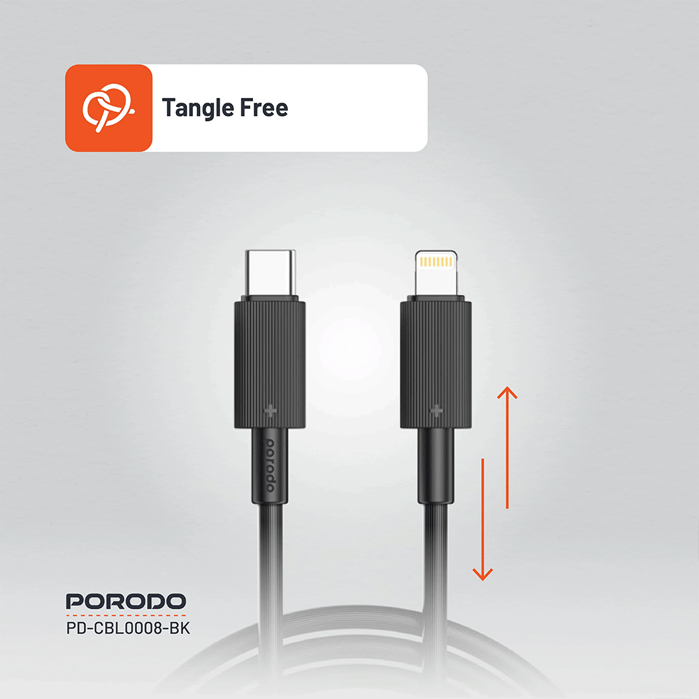 Das Porodo Typ-C auf Lightning Kabel 3m - Schwarz wurde für den täglichen Einsatz entwickelt. Die stabile Ummantelung schützt das Kabel vor Abnutzung, Knicken und Kabelbruch.
