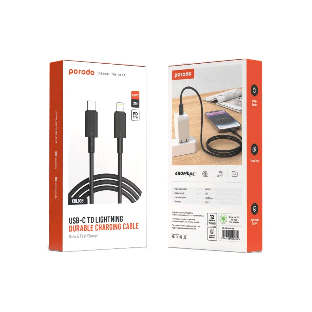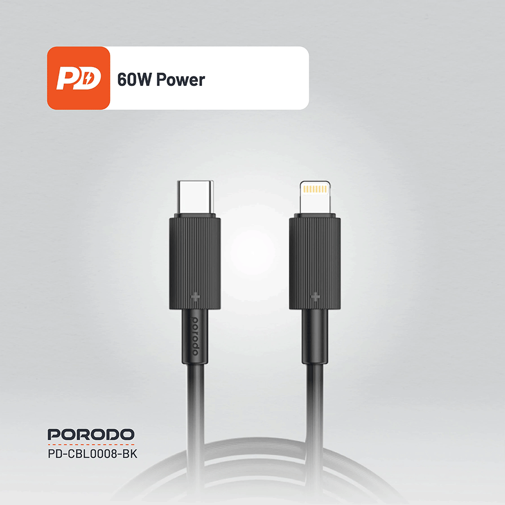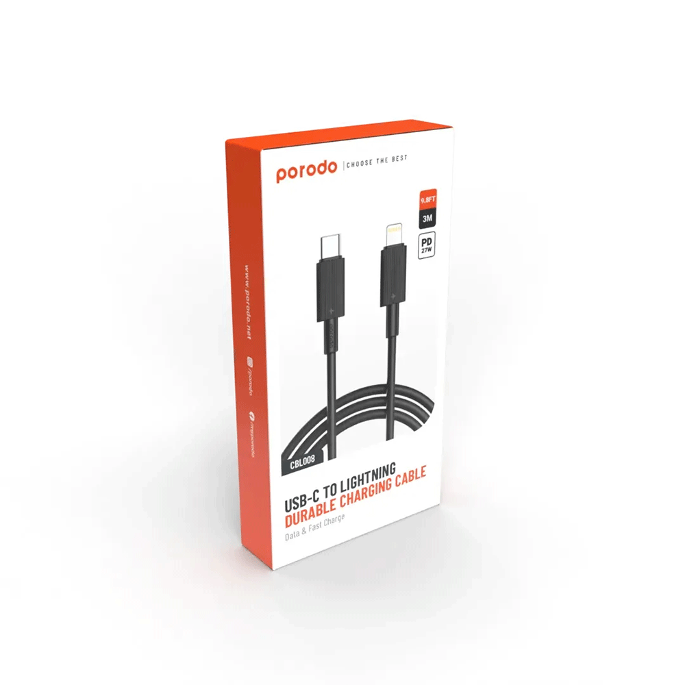 Porodo Typ-C auf Lightning Kabel 3m – Schwarz
