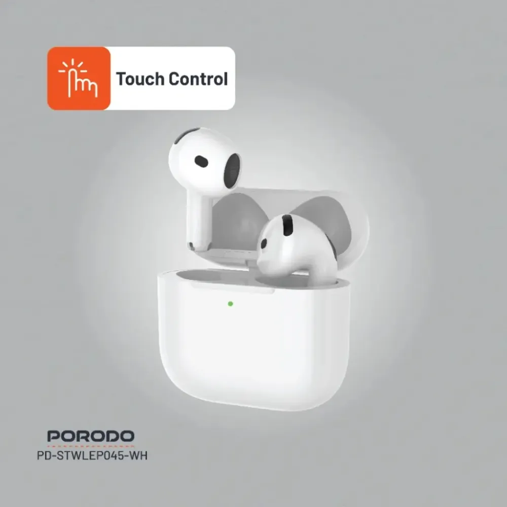 Die Porodo Soundtec Ohrhörer Gen 4 - Weiss verfügen über einfache Touch-Steuerung, die dir volle Kontrolle über Musik und Anrufe gibt: