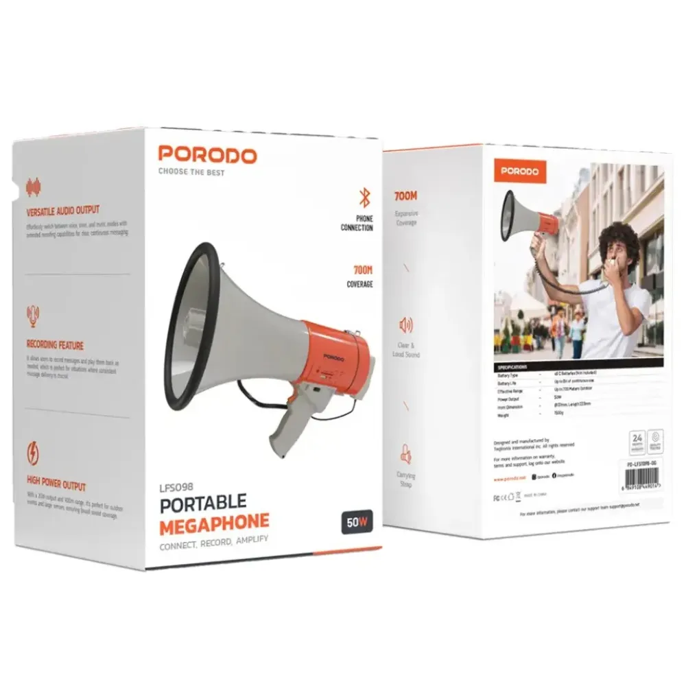 Das markante orangefarbene Design des Porodo Siren Bluetooth Lautsprecher - Orange setzt ein klares Statement und zieht alle Blicke auf sich. Es unterstreicht den modernen, energiegeladenen Lifestyle und ist ideal für Veranstaltungen, bei denen Sichtbarkeit und akustische Durchsetzungskraft gefragt sind. Ob bei Sportveranstaltungen, Konzerten oder Demonstrationen – dieses Megaphon ist das perfekte Accessoire, um Ihre Botschaften wirkungsvoll zu transportieren.