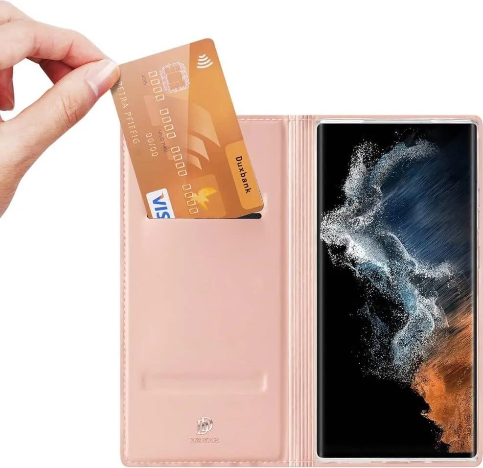 - Dux Ducis Skin Pro Hülle für Samsung Galaxy S23 Ultra Flip Card Wallet Stand Pink