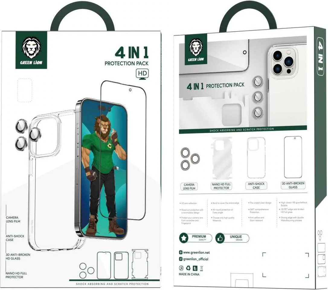 Green Lion 4-in-1 360° HD Protection Pack für iPhone 14 – Silber