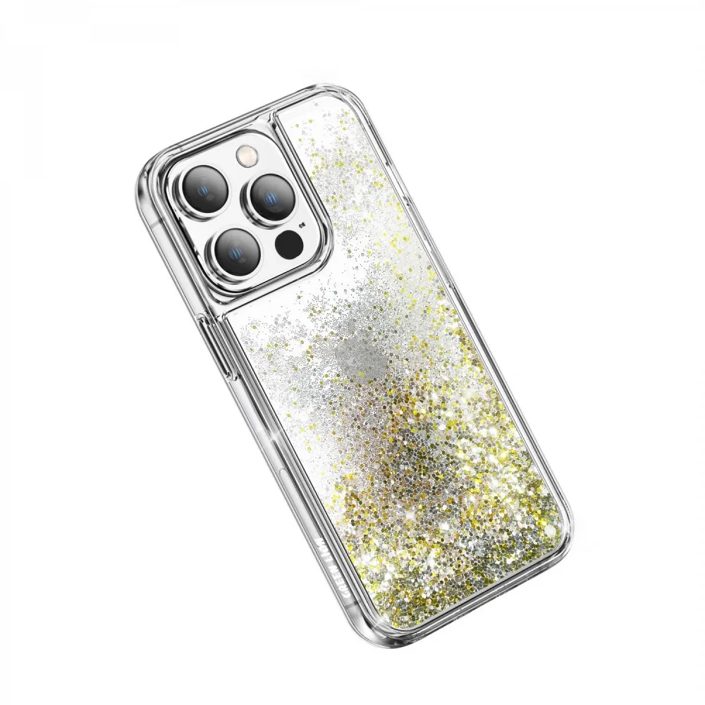 3666339092863 | Guess Liquid Glitter Triangle Hard Case for iPhone 14 (6.1) - Transparent
