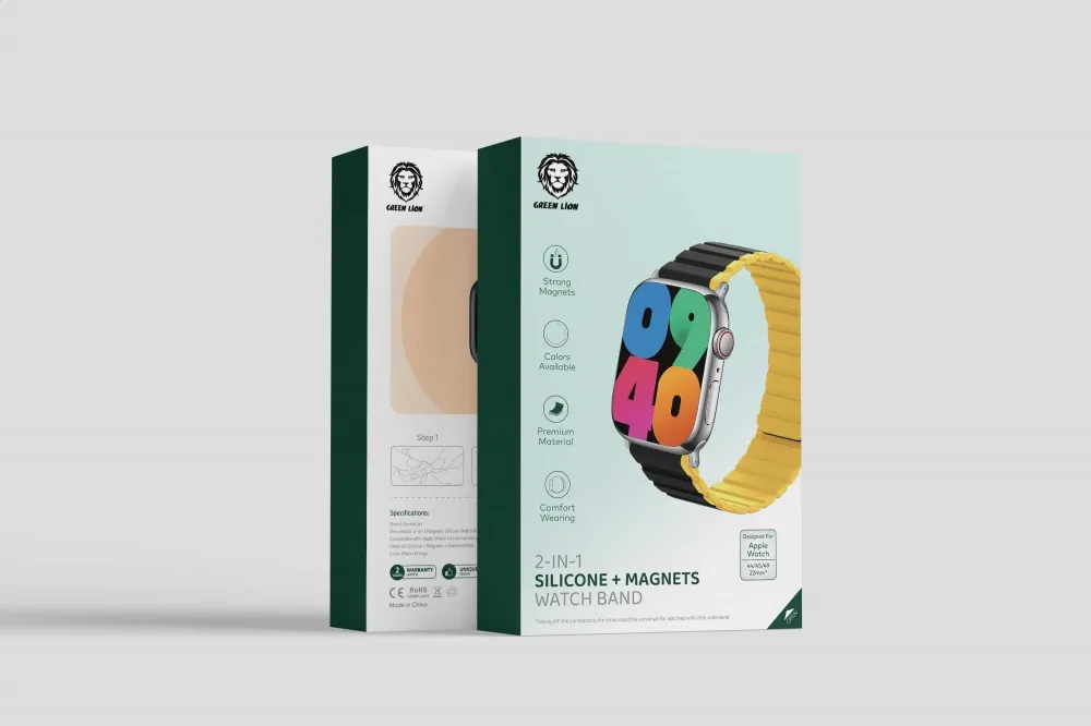 - Kompatibilität mit beliebten Smartwatches: Das Green Lion Silicone Magnetic Watch Band for Apple Watch wurde entwickelt, um mit einer Vielzahl von beliebten Smartwatch-Modellen kompatibel zu sein, einschliesslich denen von Apple, Samsung, Garmin, Fitbit und vielen anderen. Es ist in gängigen Breiten wie 22 mm und 24 mm erhältlich, was es mit den meisten Smartwatches auf dem Markt kompatibel macht. Das universelle Design stellt sicher, dass Sie das Armband mit jeder Uhr verwenden können, die diese Grössen verwendet, und gibt Ihnen somit Flexibilität bei der Wahl Ihres Geräts.