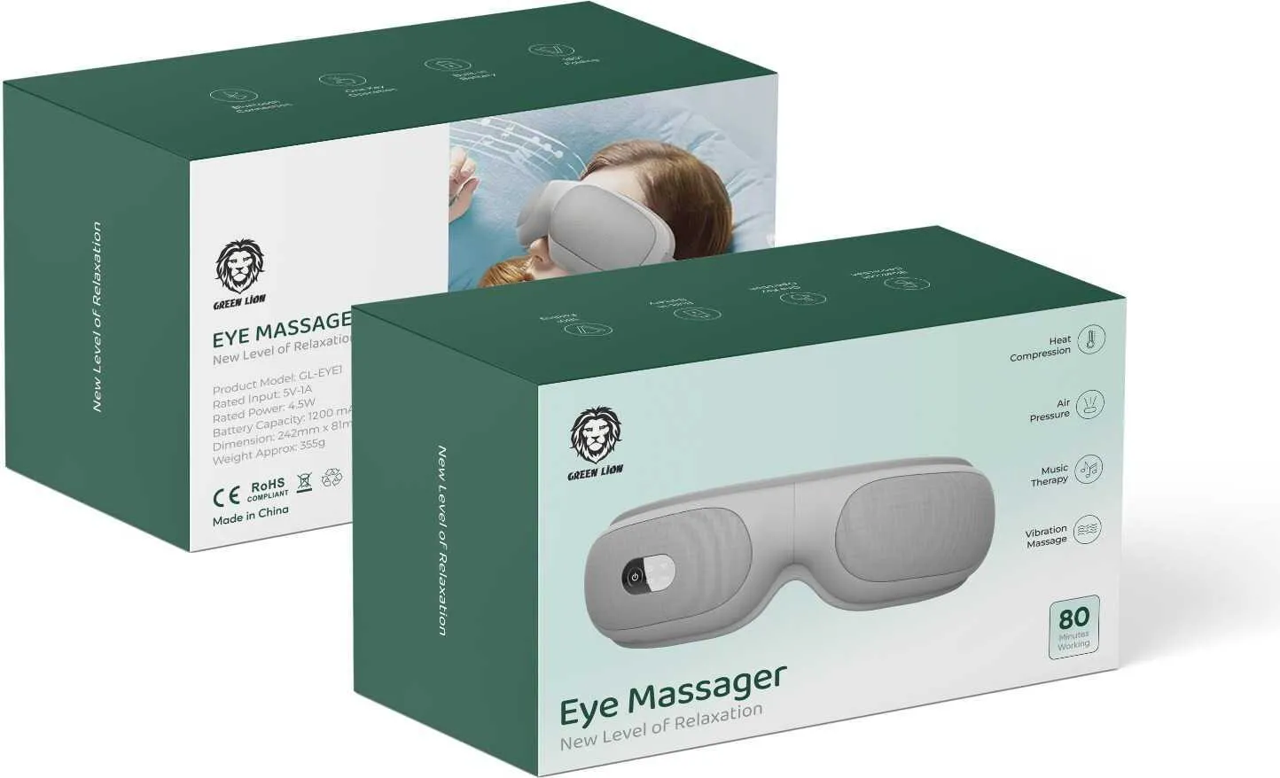 Der Green Lion Eye Massager 4.5W 1200mAh  ist ein erstklassiges Wellness-Gerät, das sich ideal für die Pflege und Entspannung der Augenpartie eignet. Mit seinen leistungsstarken Funktionen, dem ergonomischen Design und den gesundheitlichen Vorteilen bietet dieser Massager eine effektive Lösung zur Linderung von Augenbelastungen und zur Förderung der allgemeinen Entspannung. Ob für den täglichen Gebrauch zu Hause, im Büro oder unterwegs – der Eye Massager 1512 ist ein unverzichtbares Zubehör für jeden, der seine Augen gesund und entspannt halten möchte. Investieren Sie in Ihre Augengesundheit und erleben Sie die wohltuenden Effekte des Green Lion Eye Massager 4.5W 1200mAh